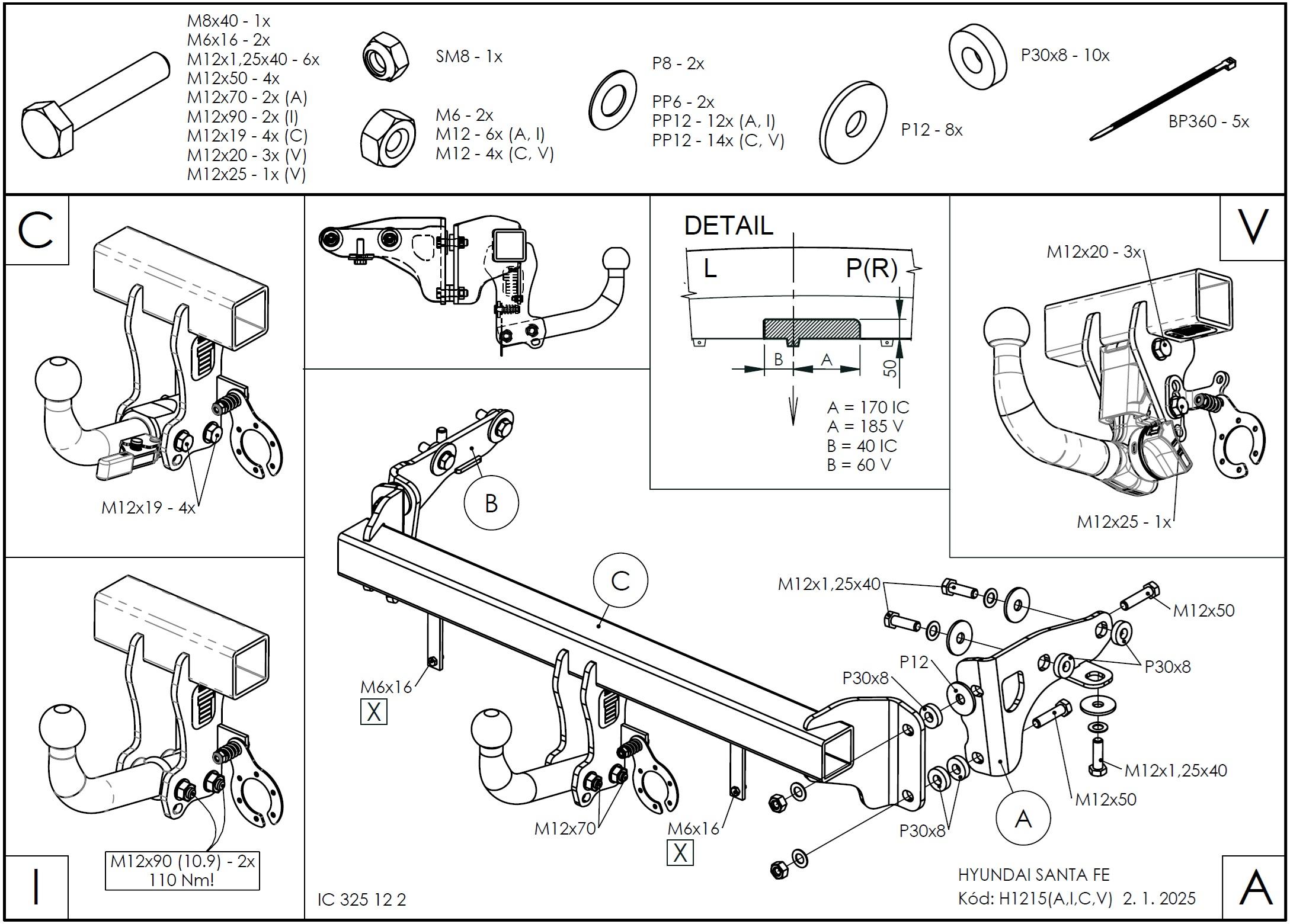 • Ťažnú guľu (podľa zvoleného typu – pevná skrutková alebo odnímateľná/bajonetová).