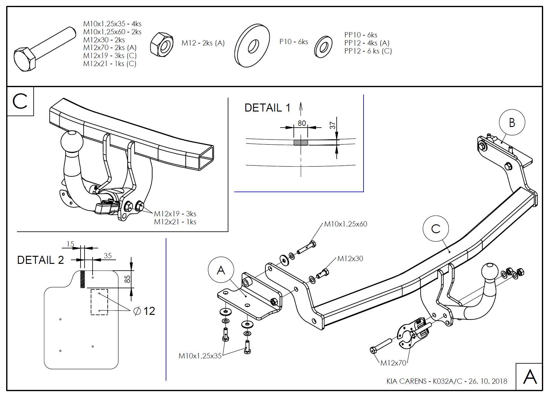 • Ťažnú guľu (podľa zvoleného typu – pevná skrutková alebo odnímateľná/bajonetová).