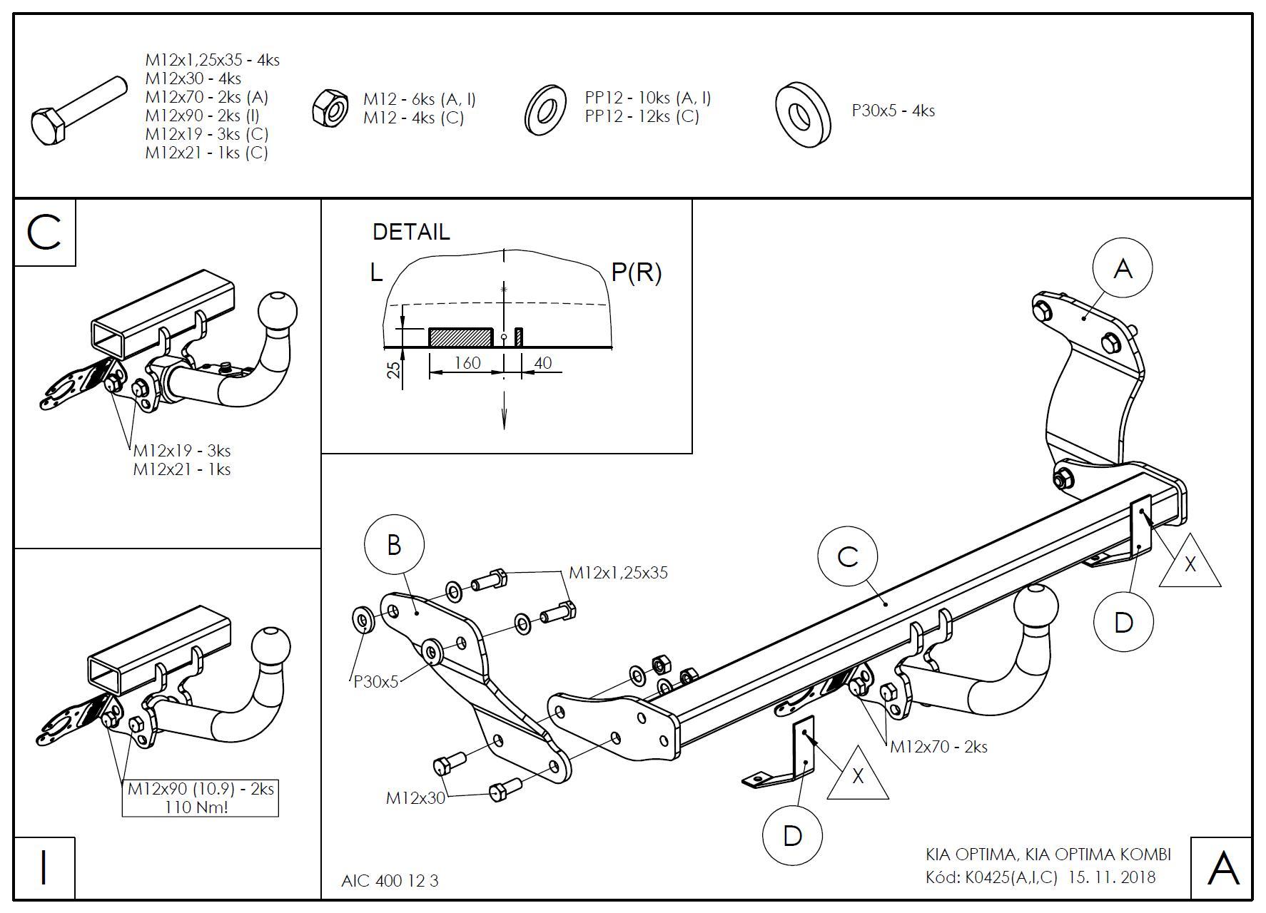 • Ťažnú guľu (podľa zvoleného typu – pevná skrutková alebo odnímateľná/bajonetová).