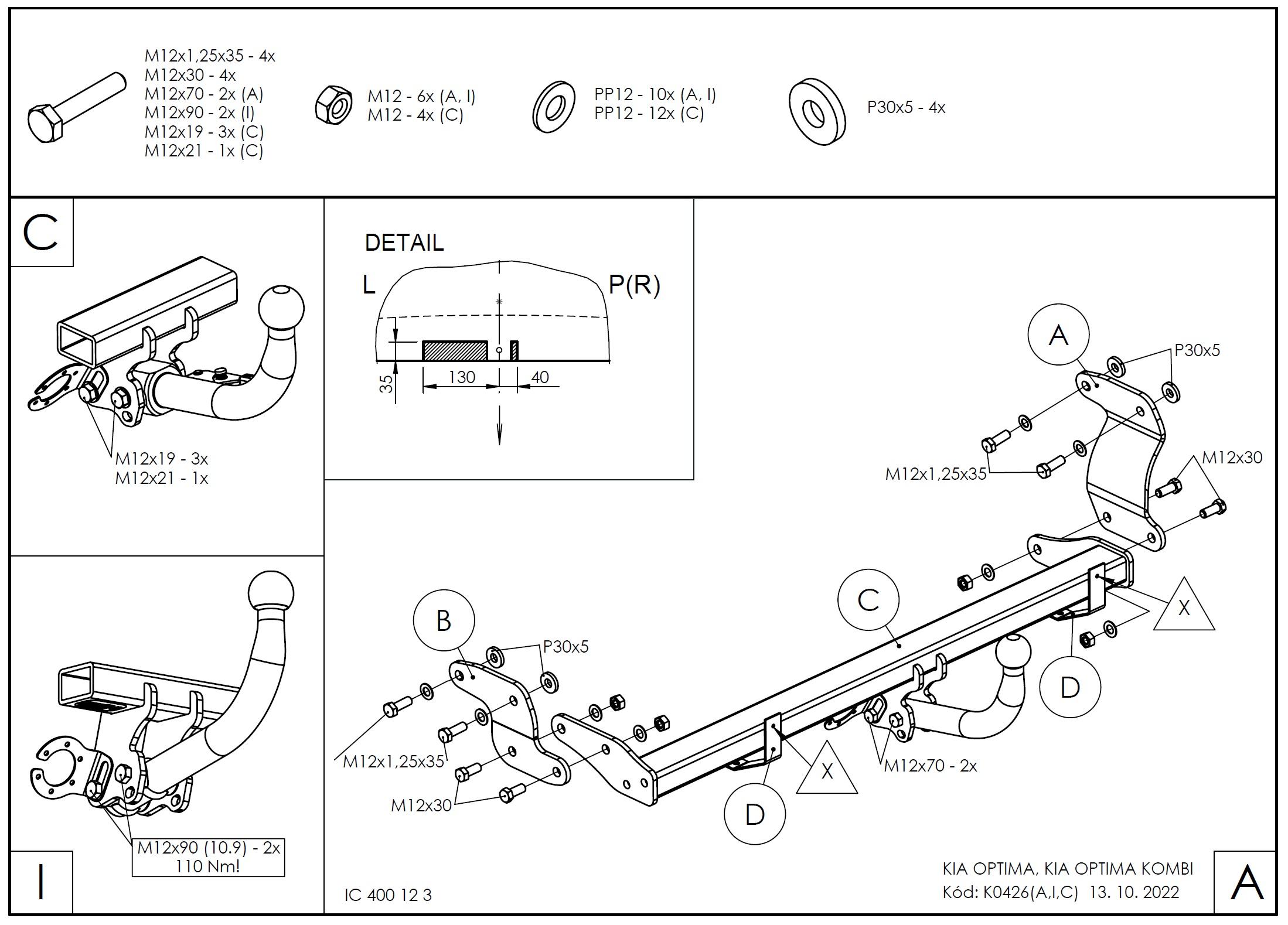 • Ťažnú guľu (podľa zvoleného typu – pevná skrutková alebo odnímateľná/bajonetová).