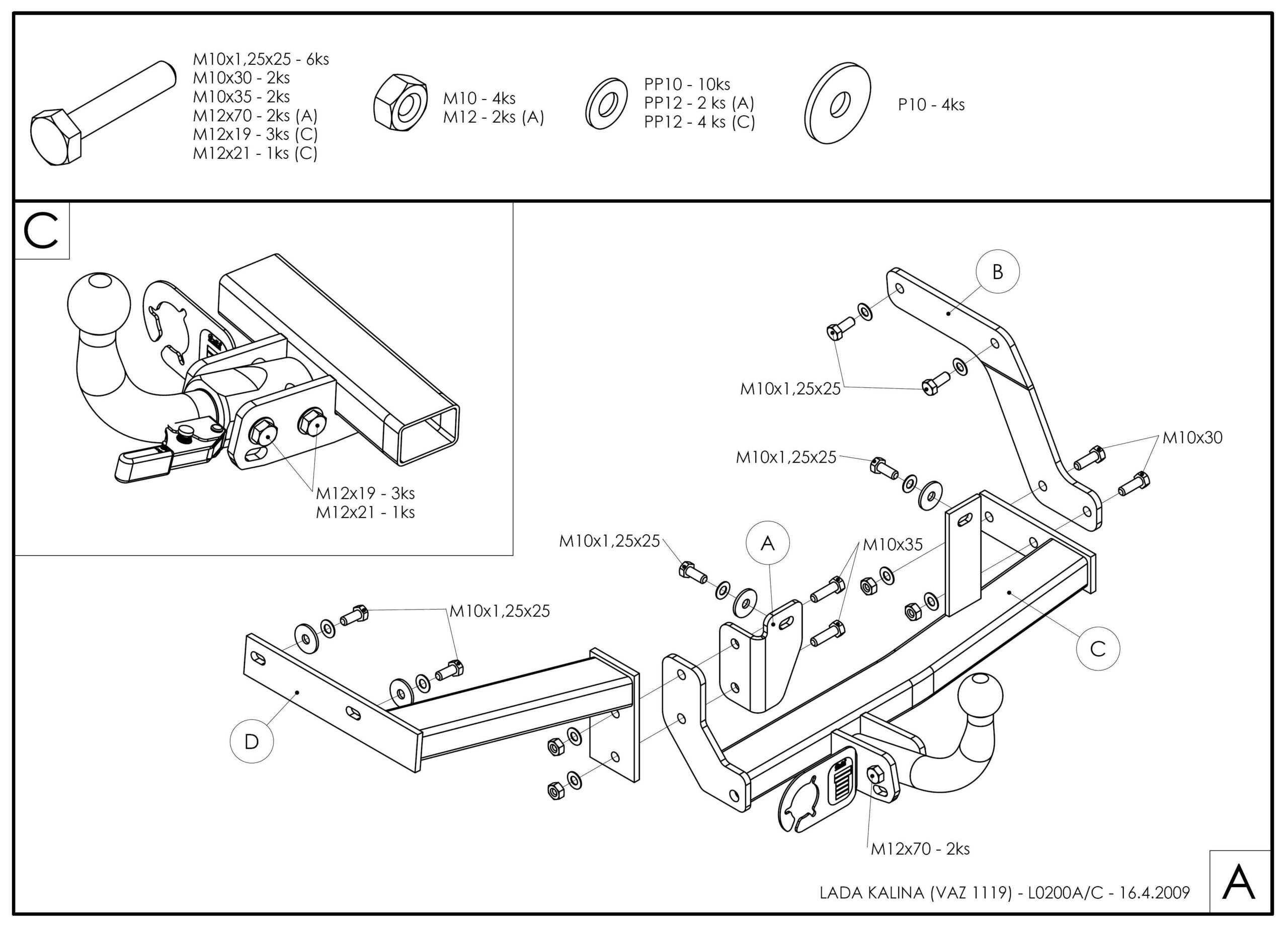 • Všetok potrebný spojovací materiál (pevnostné skrutky, matice, podložky).