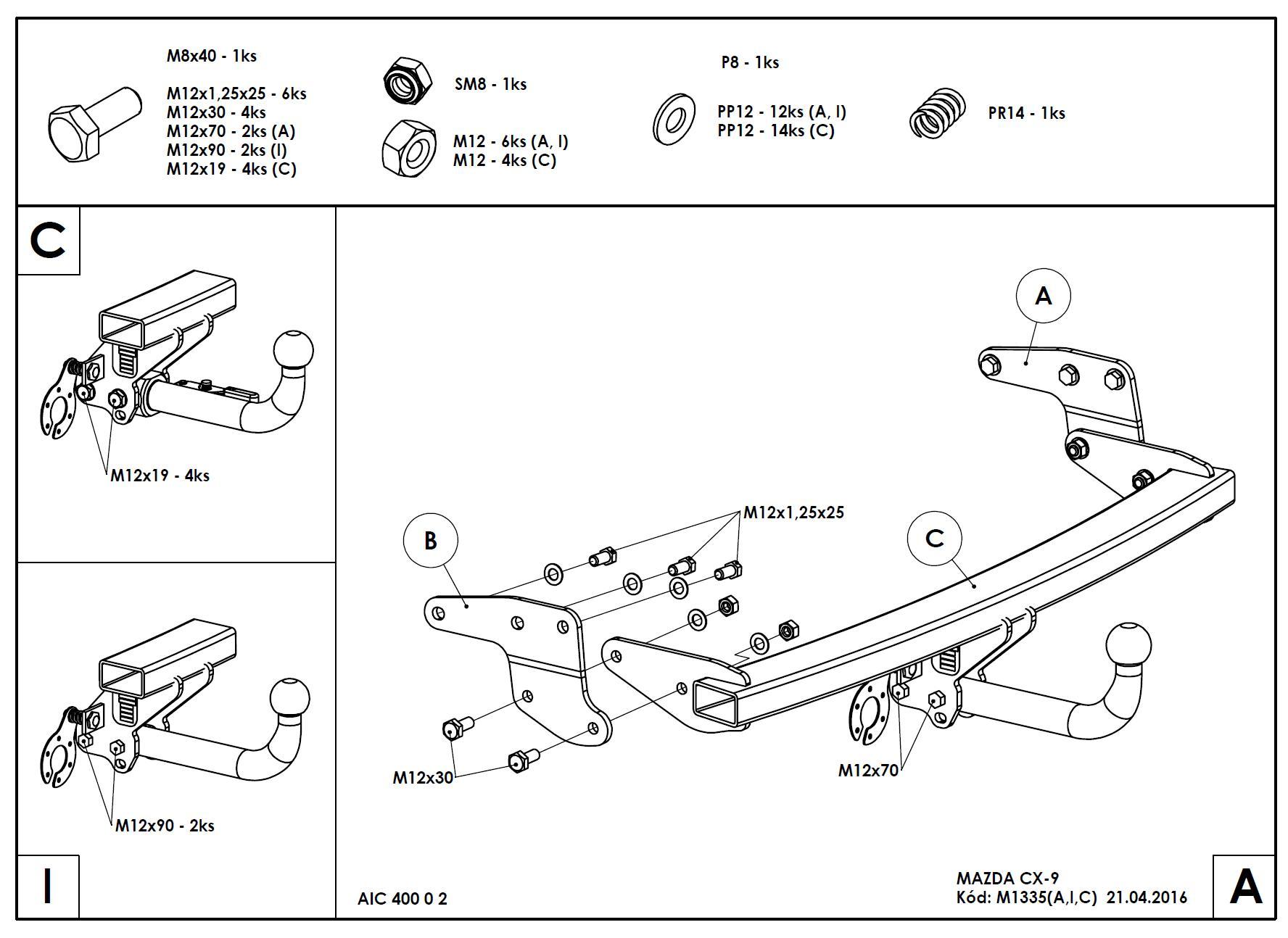 • Ťažnú guľu (podľa zvoleného typu – pevná skrutková alebo odnímateľná/bajonetová).