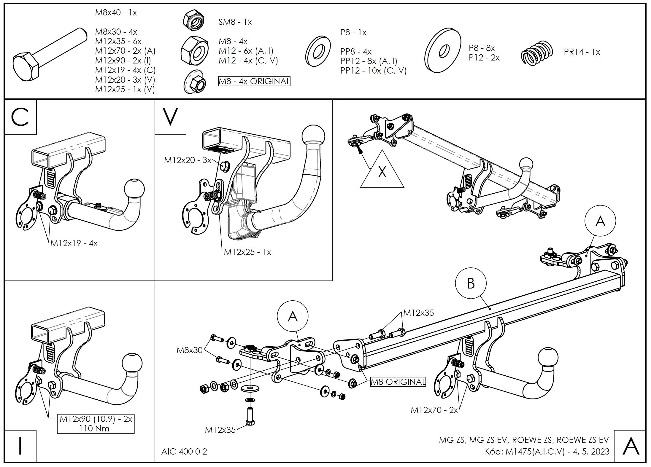 • Ťažnú guľu (podľa zvoleného typu – pevná skrutková alebo odnímateľná/bajonetová).