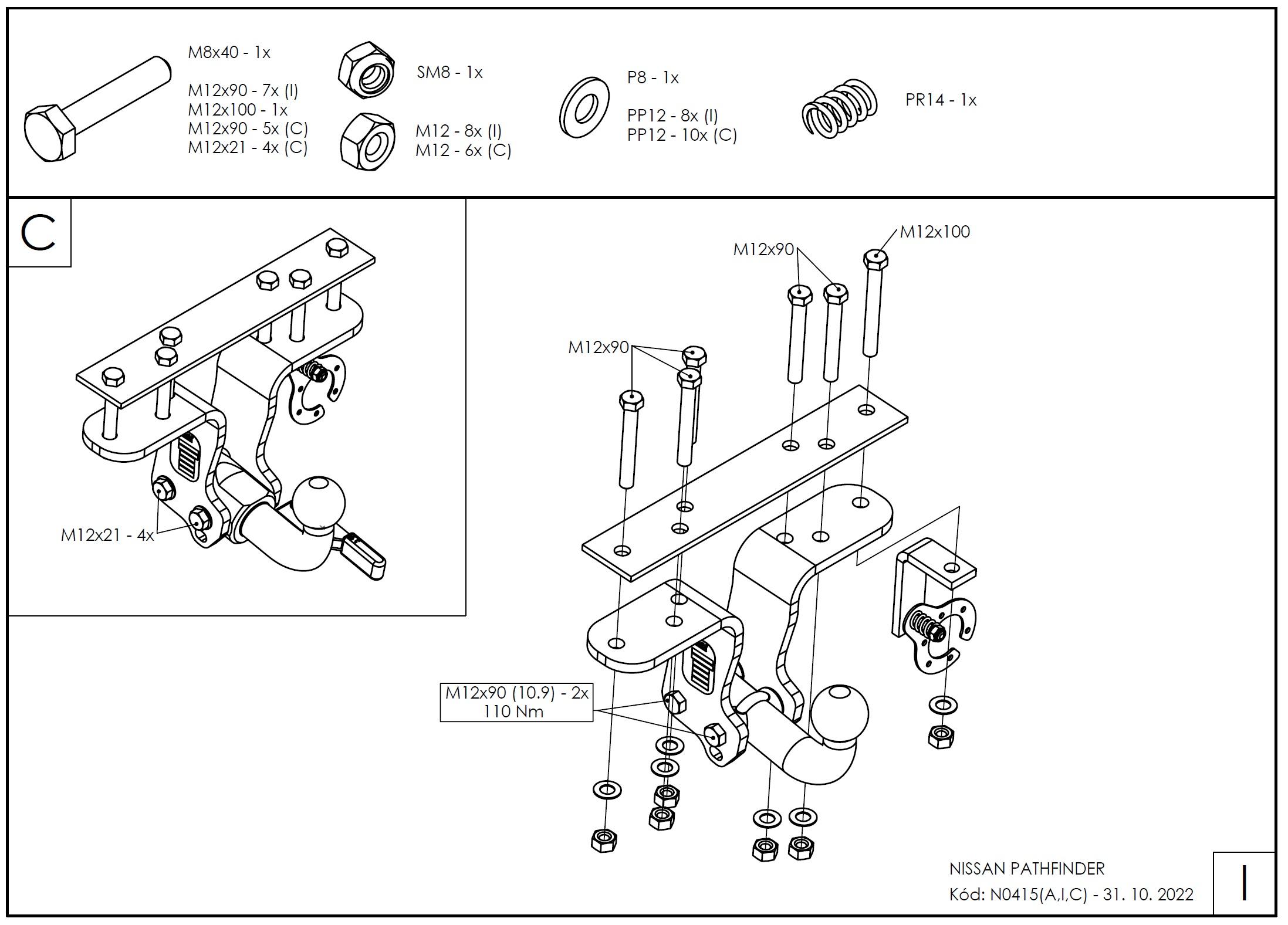• Ťažnú guľu (podľa zvoleného typu – pevná skrutková alebo odnímateľná/bajonetová).