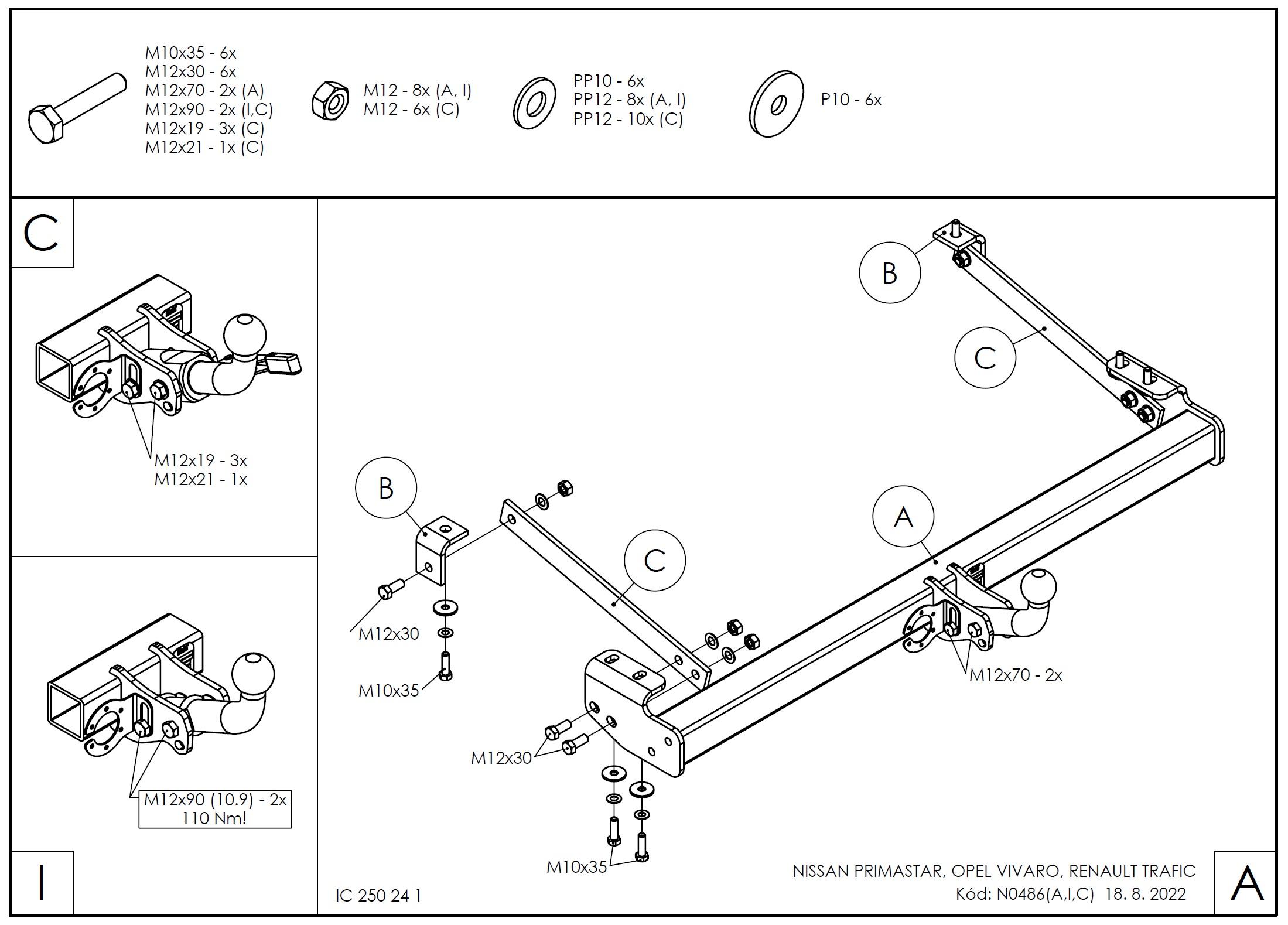 • Ťažnú guľu (podľa zvoleného typu – pevná skrutková alebo odnímateľná/bajonetová).