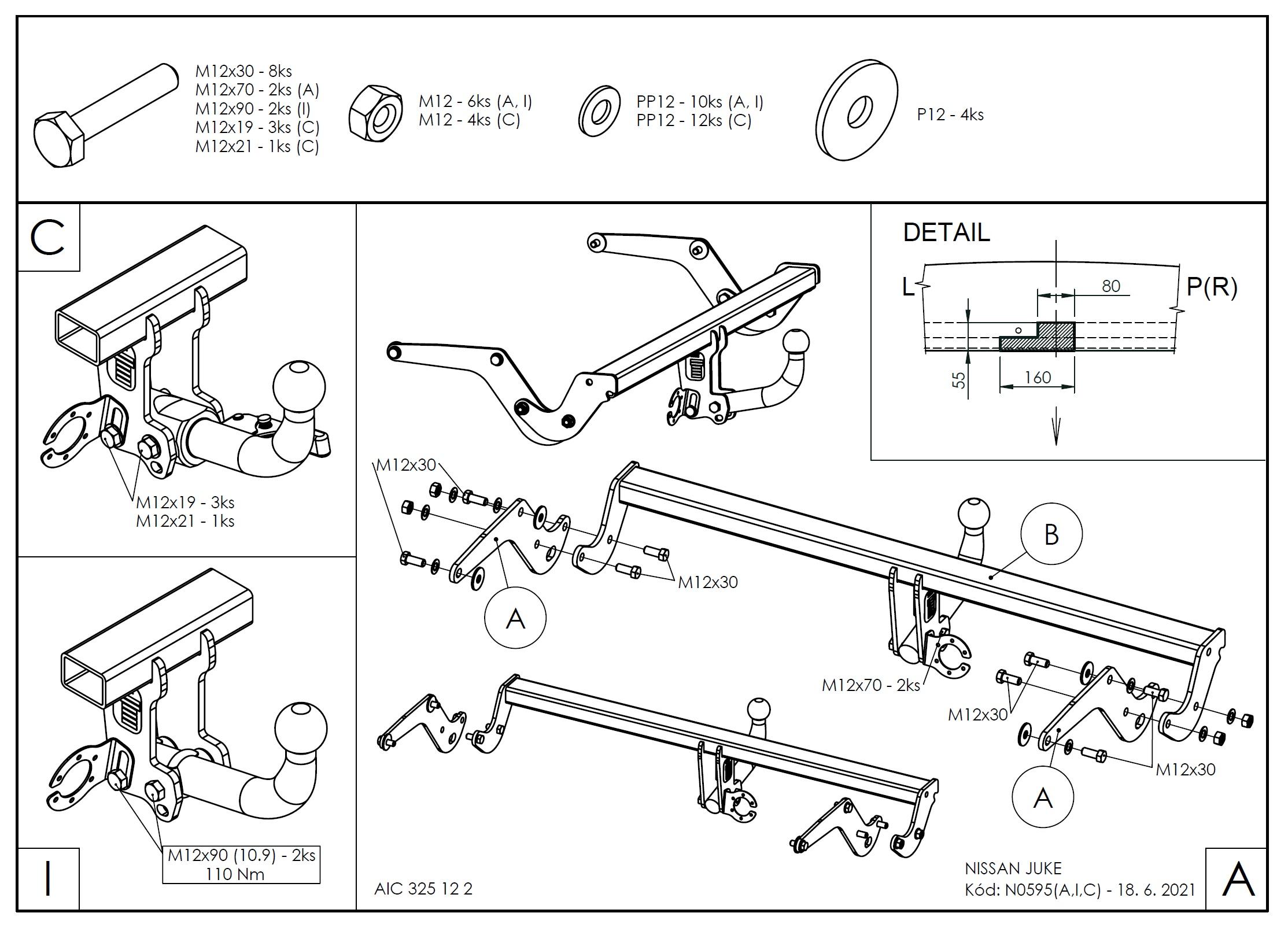 • Ťažnú guľu (podľa zvoleného typu – pevná skrutková alebo odnímateľná/bajonetová).