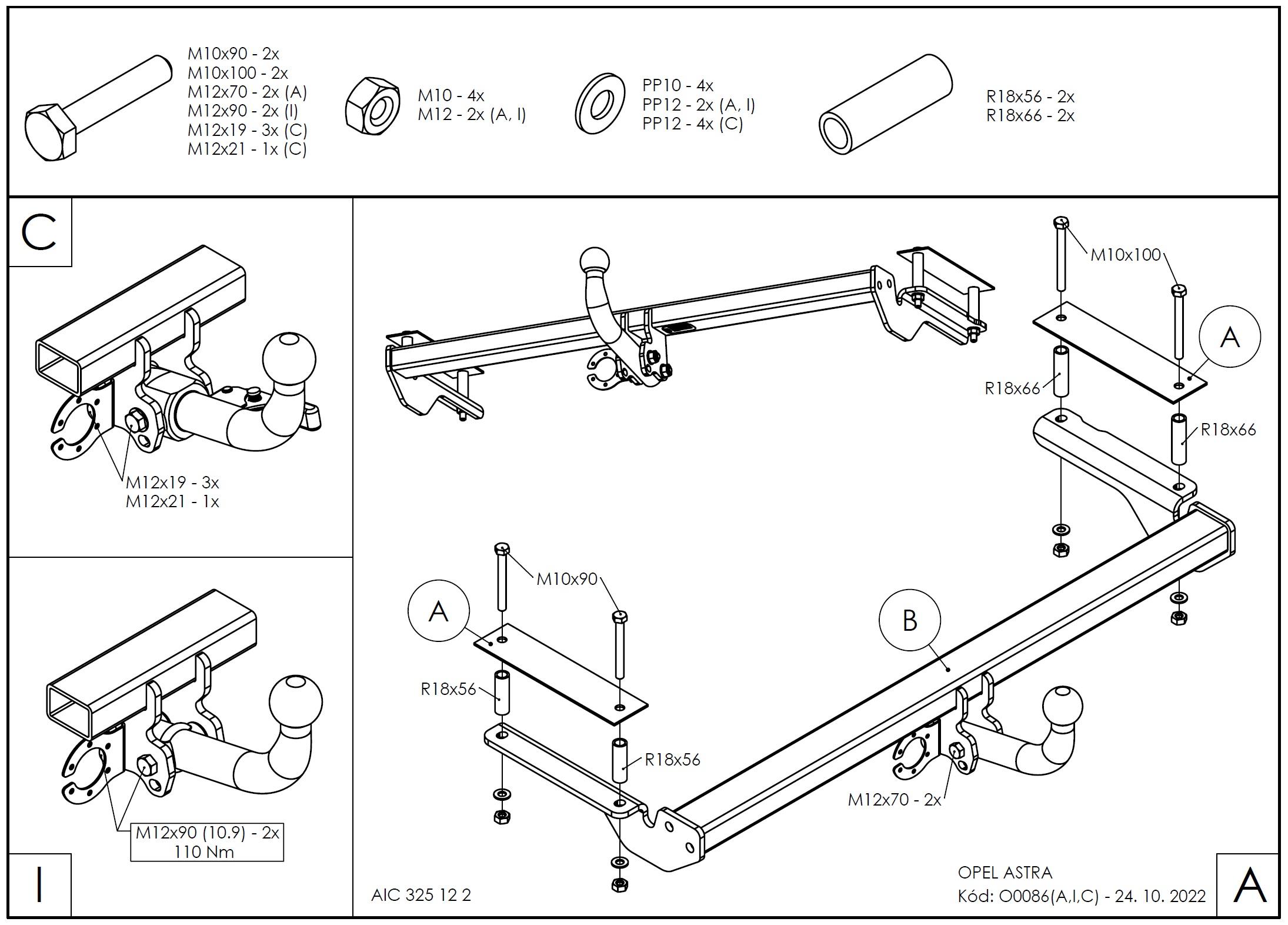 • Ťažnú guľu (podľa zvoleného typu – pevná skrutková alebo odnímateľná/bajonetová).