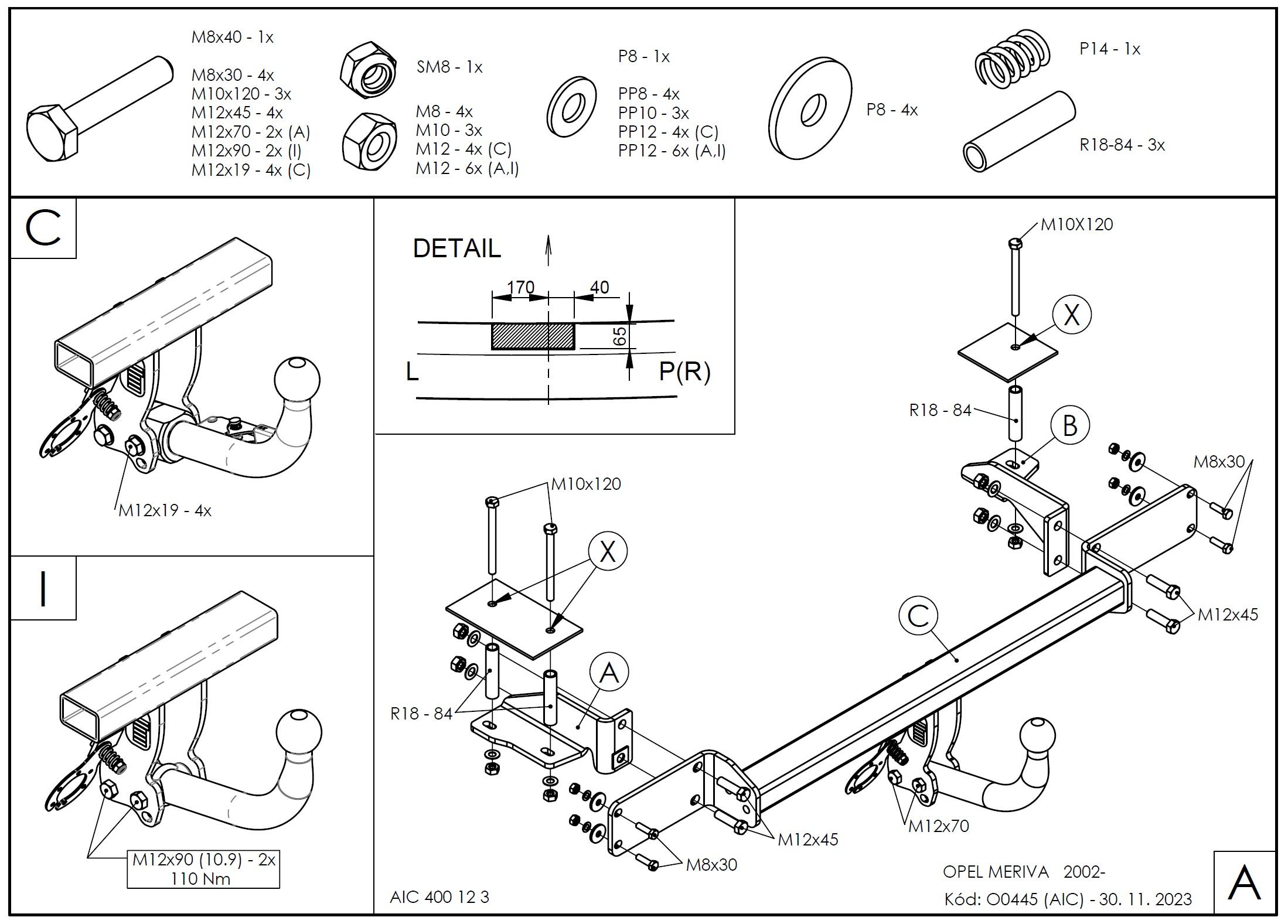 • Ťažnú guľu (podľa zvoleného typu – pevná skrutková alebo odnímateľná/bajonetová).