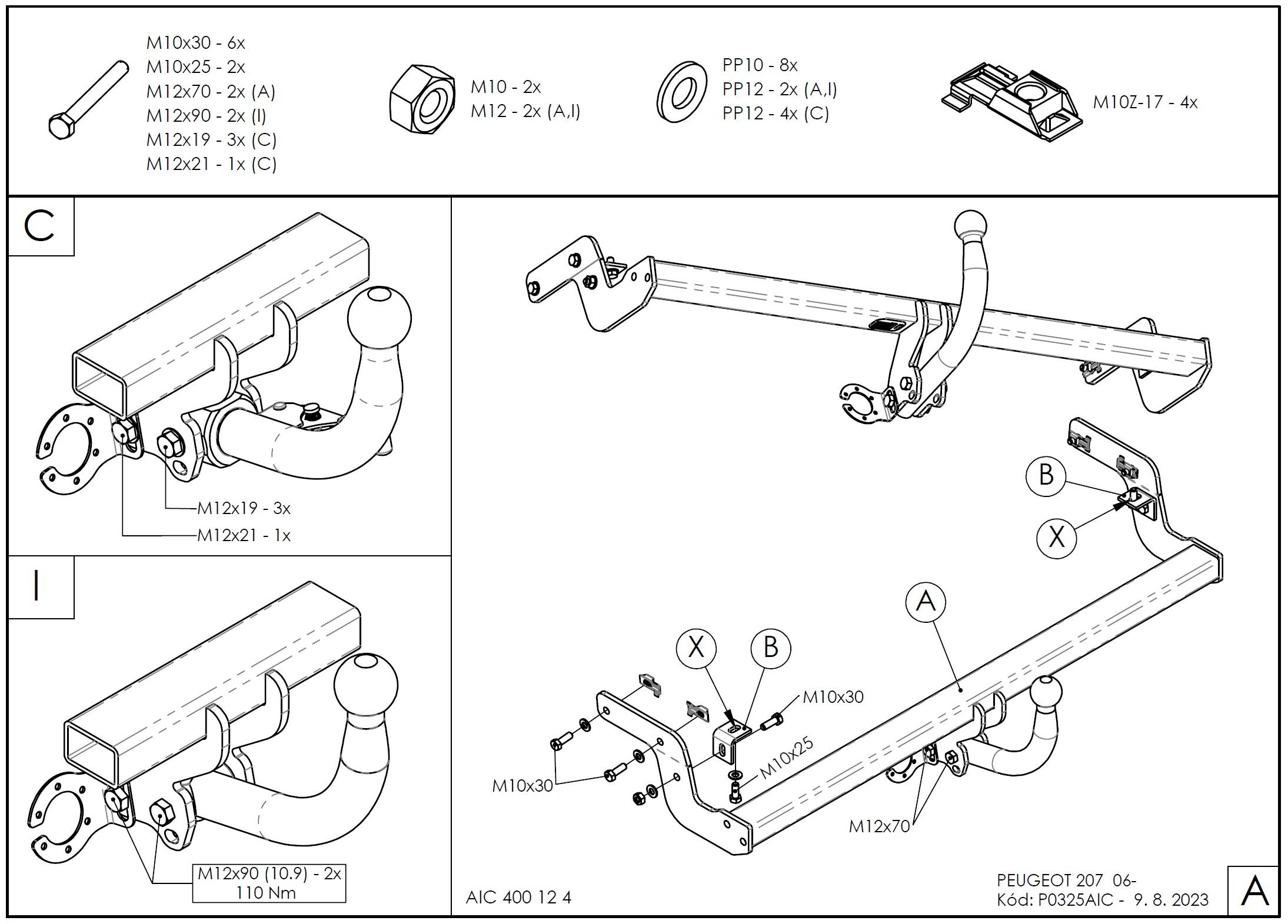 • Ťažnú guľu (podľa zvoleného typu – pevná skrutková alebo odnímateľná/bajonetová).