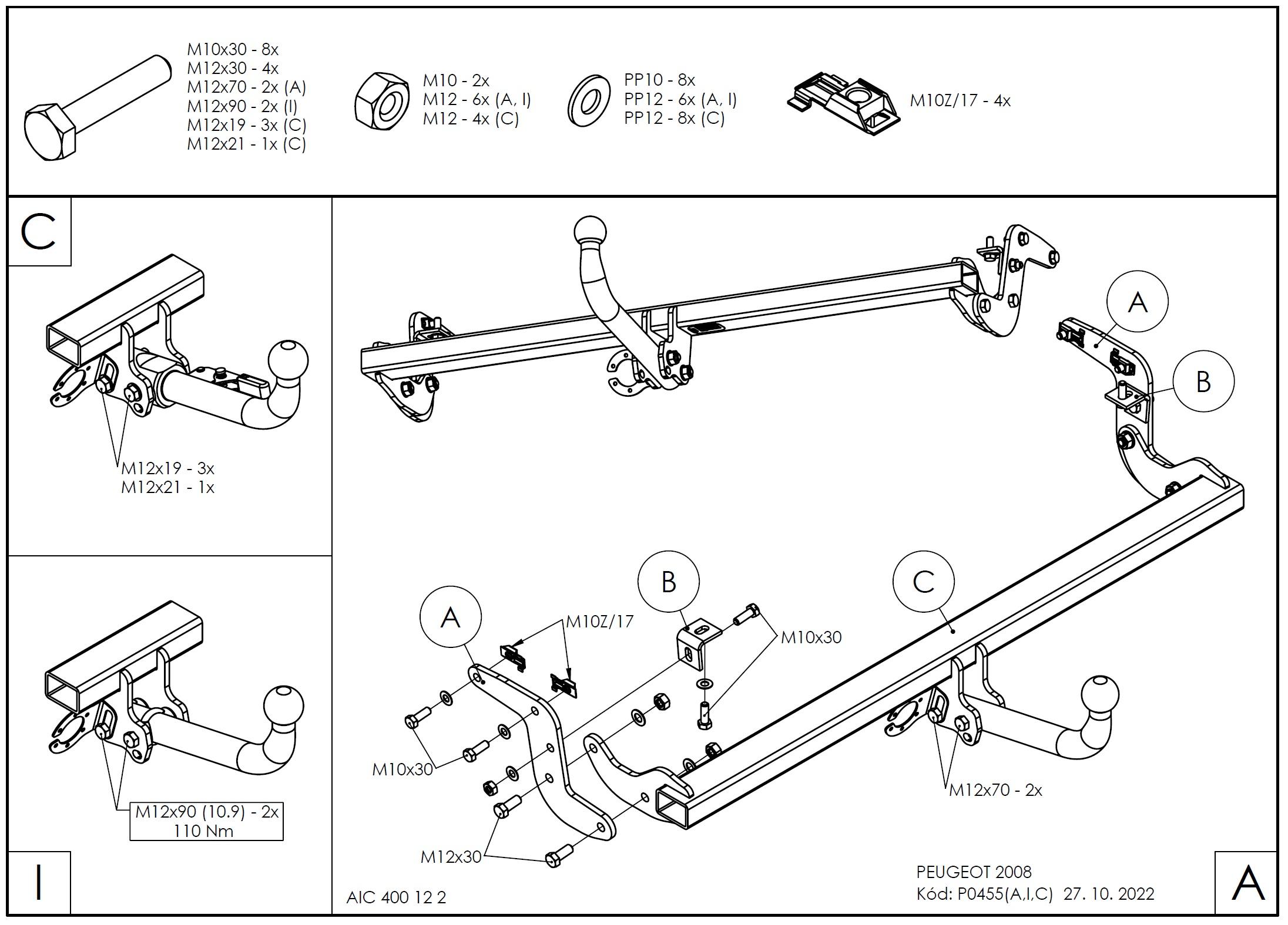 • Ťažnú guľu (podľa zvoleného typu – pevná skrutková alebo odnímateľná/bajonetová).