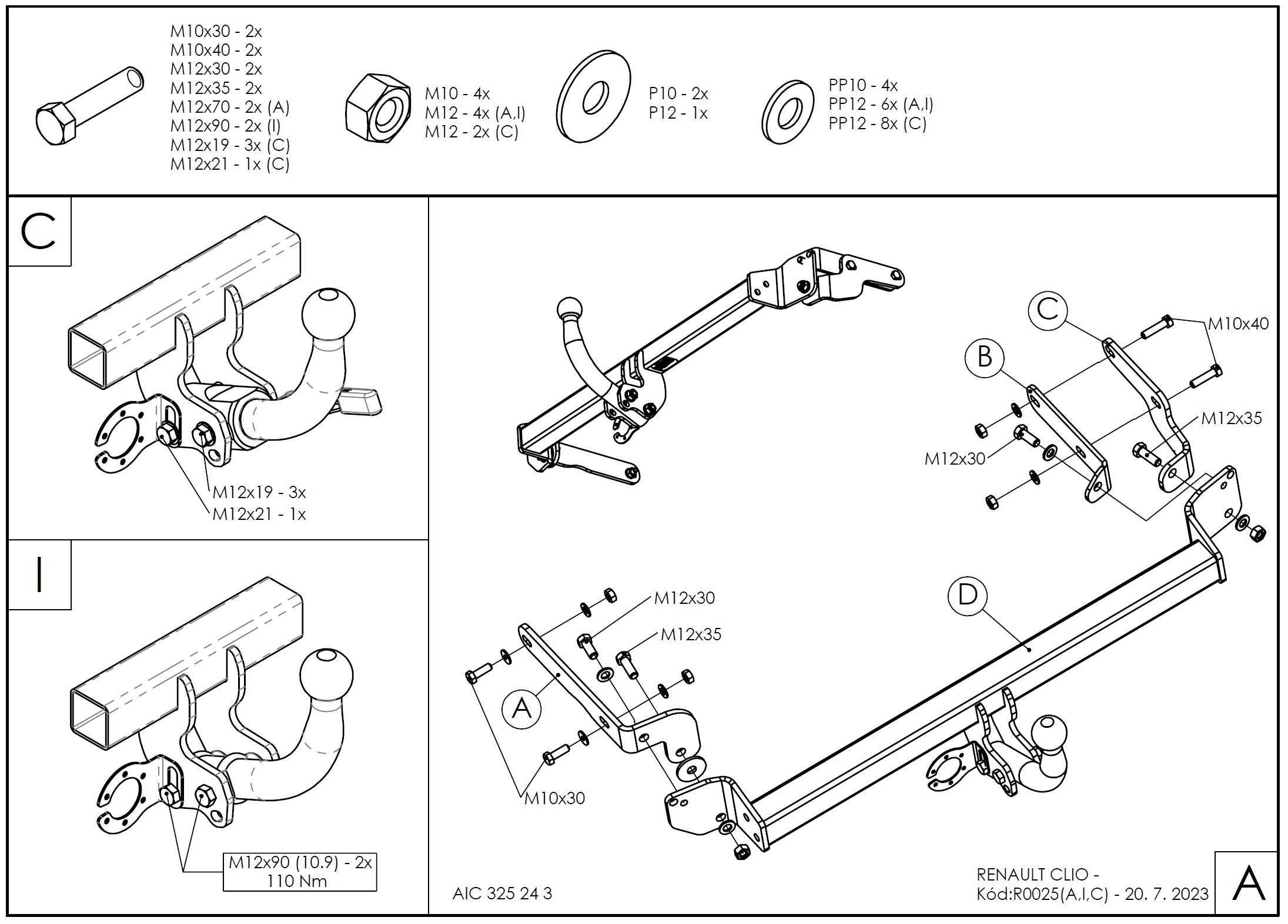 • Ťažnú guľu (podľa zvoleného typu – pevná skrutková alebo odnímateľná/bajonetová).
