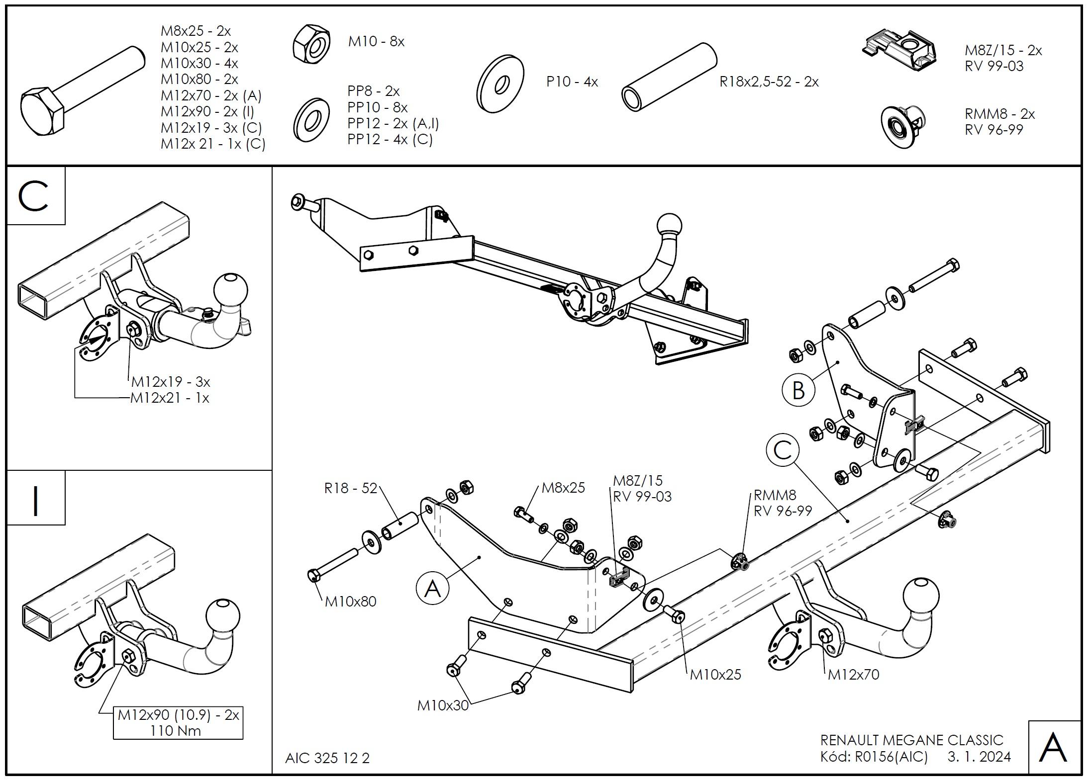 Ťažnú guľu (podľa zvoleného typu – pevná skrutková alebo odnímateľná/bajonetová).