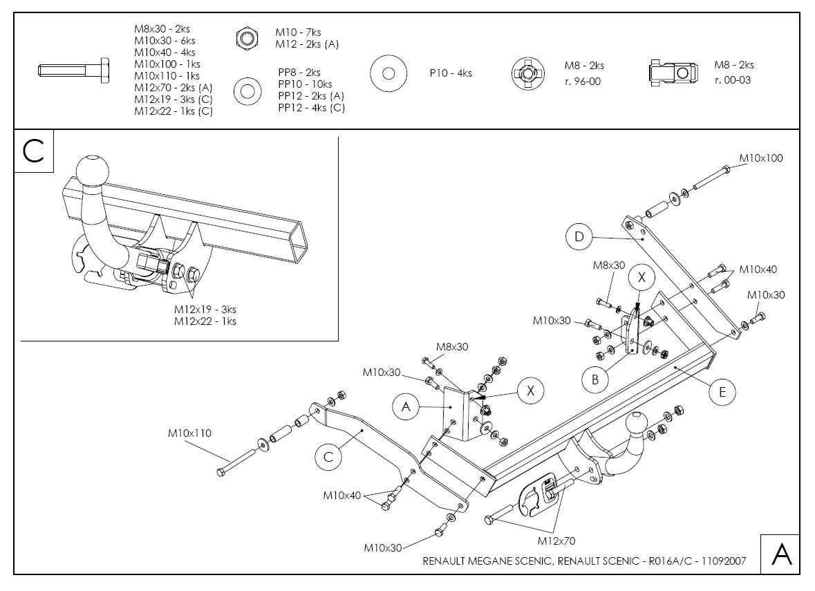 • Ťažnú guľu (podľa zvoleného typu – pevná skrutková alebo odnímateľná/bajonetová).