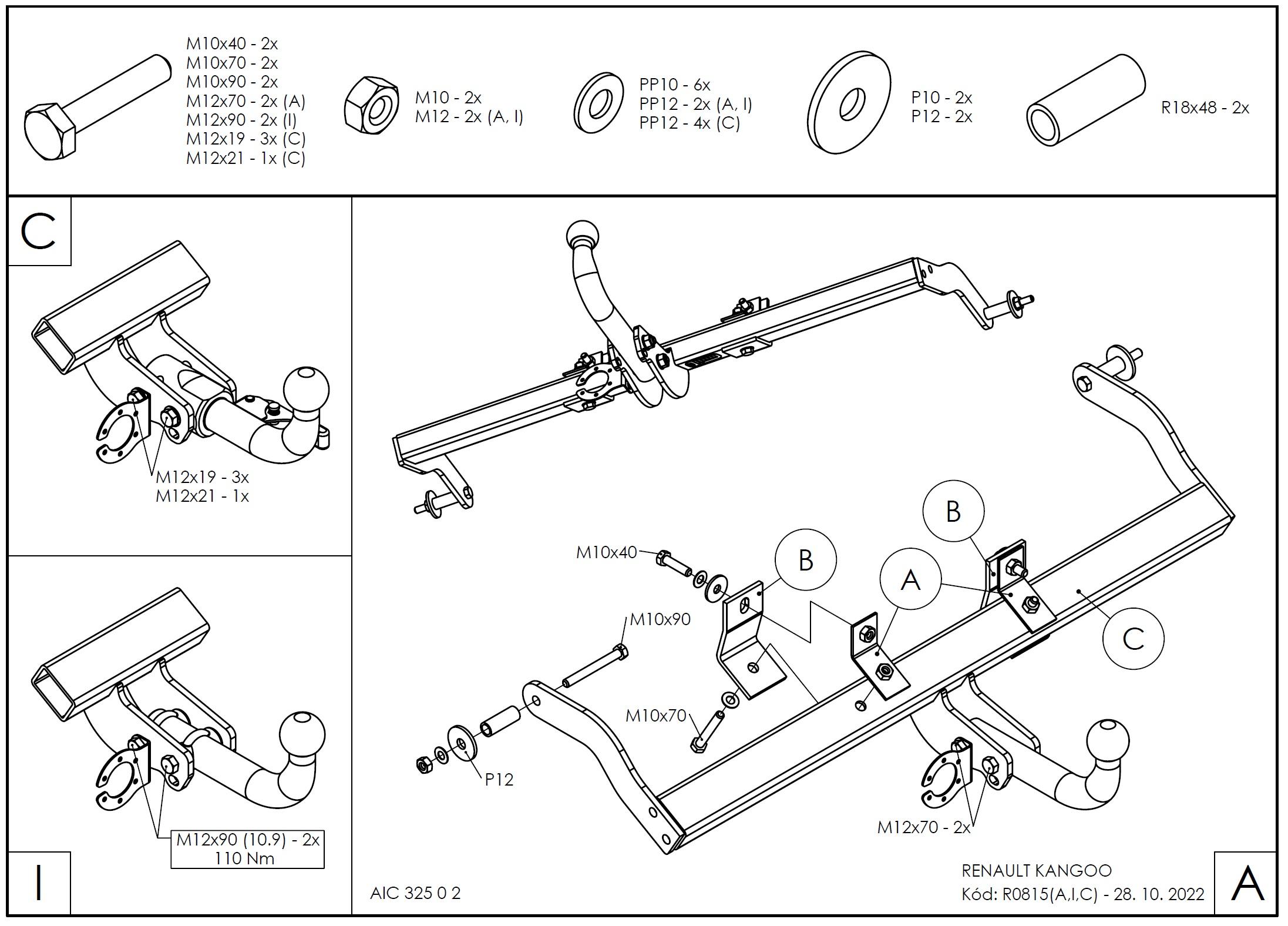 • Ťažnú guľu (podľa zvoleného typu – pevná skrutková alebo odnímateľná/bajonetová).