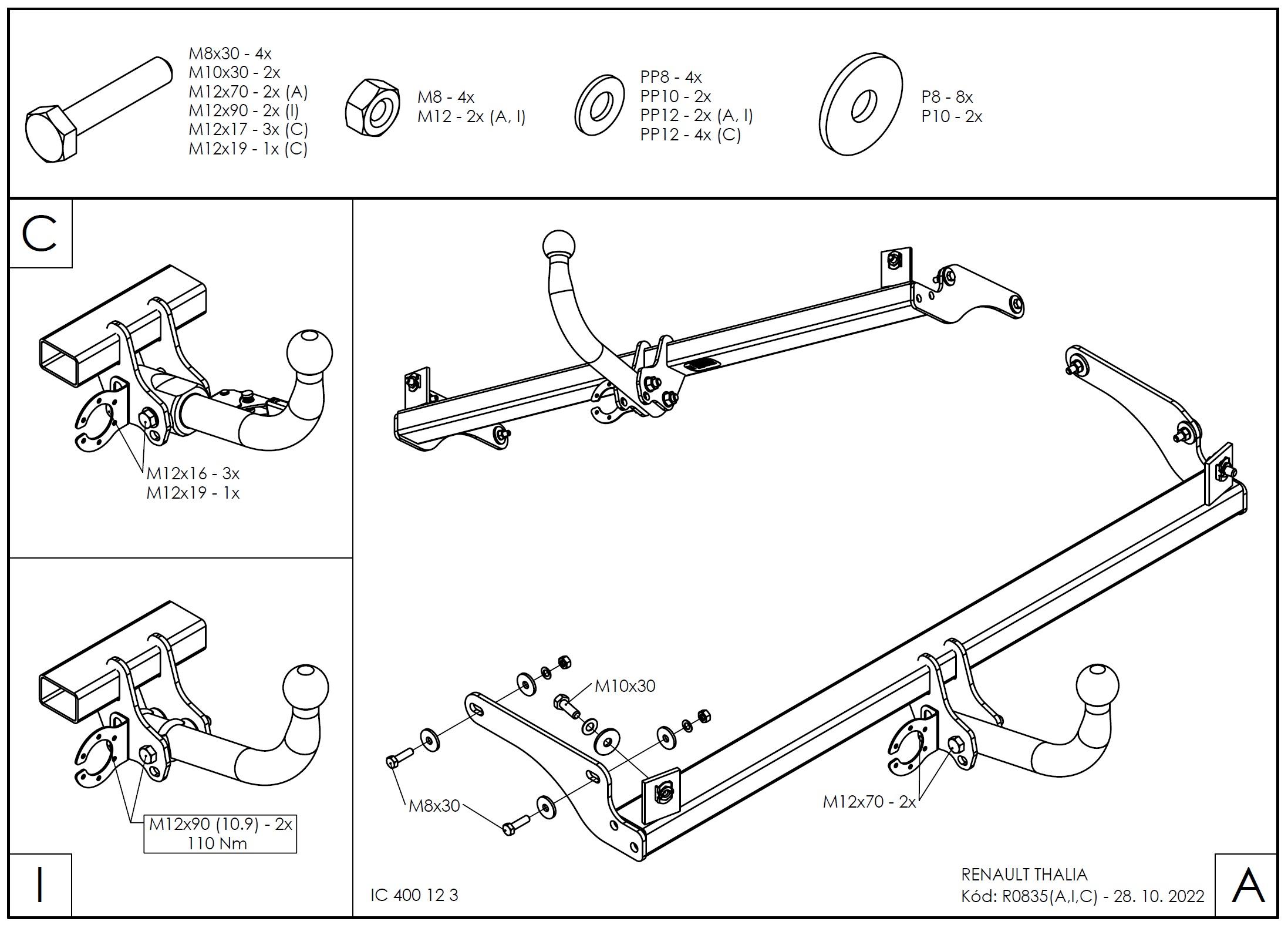 • Ťažnú guľu (podľa zvoleného typu – pevná skrutková alebo odnímateľná/bajonetová).
