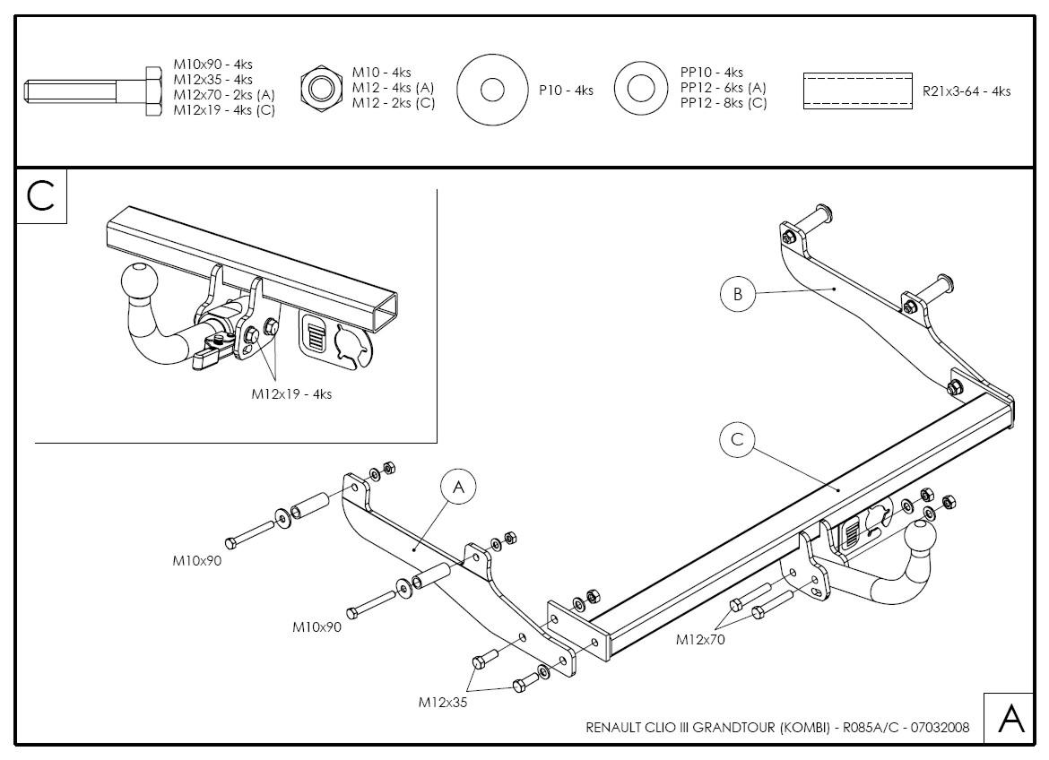 • Ťažnú guľu (podľa zvoleného typu – pevná skrutková alebo odnímateľná/bajonetová).