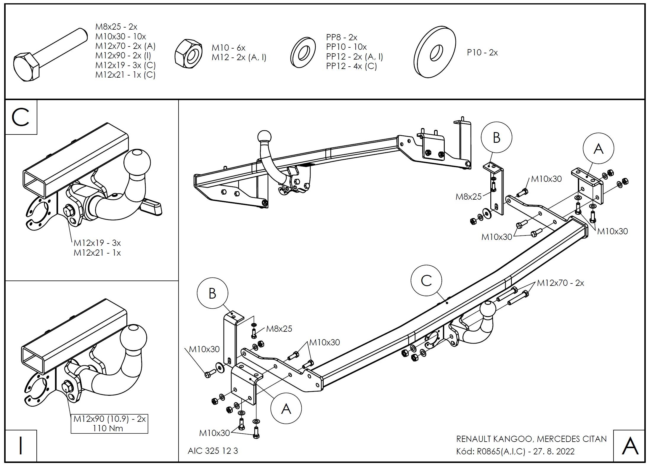 • Ťažnú guľu (podľa zvoleného typu – pevná skrutková alebo odnímateľná/bajonetová).