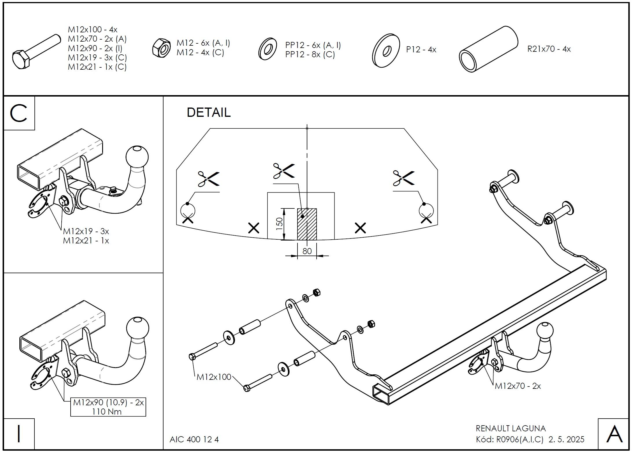 Ťažnú guľu (podľa zvoleného typu – pevná skrutková alebo odnímateľná/bajonetová).