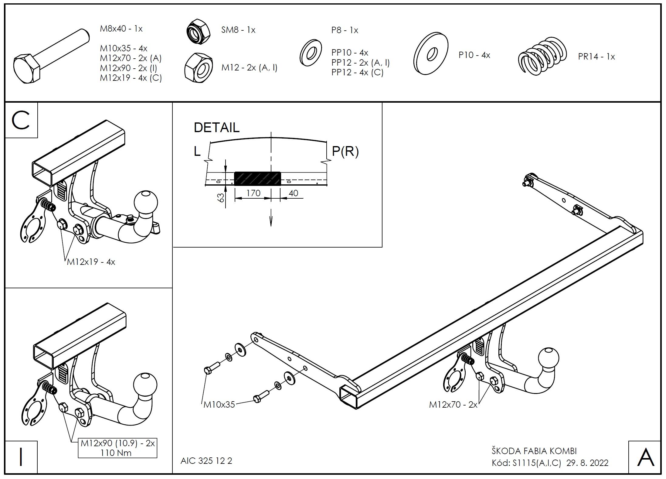 • Ťažnú guľu (podľa zvoleného typu – pevná skrutková alebo odnímateľná/bajonetová).