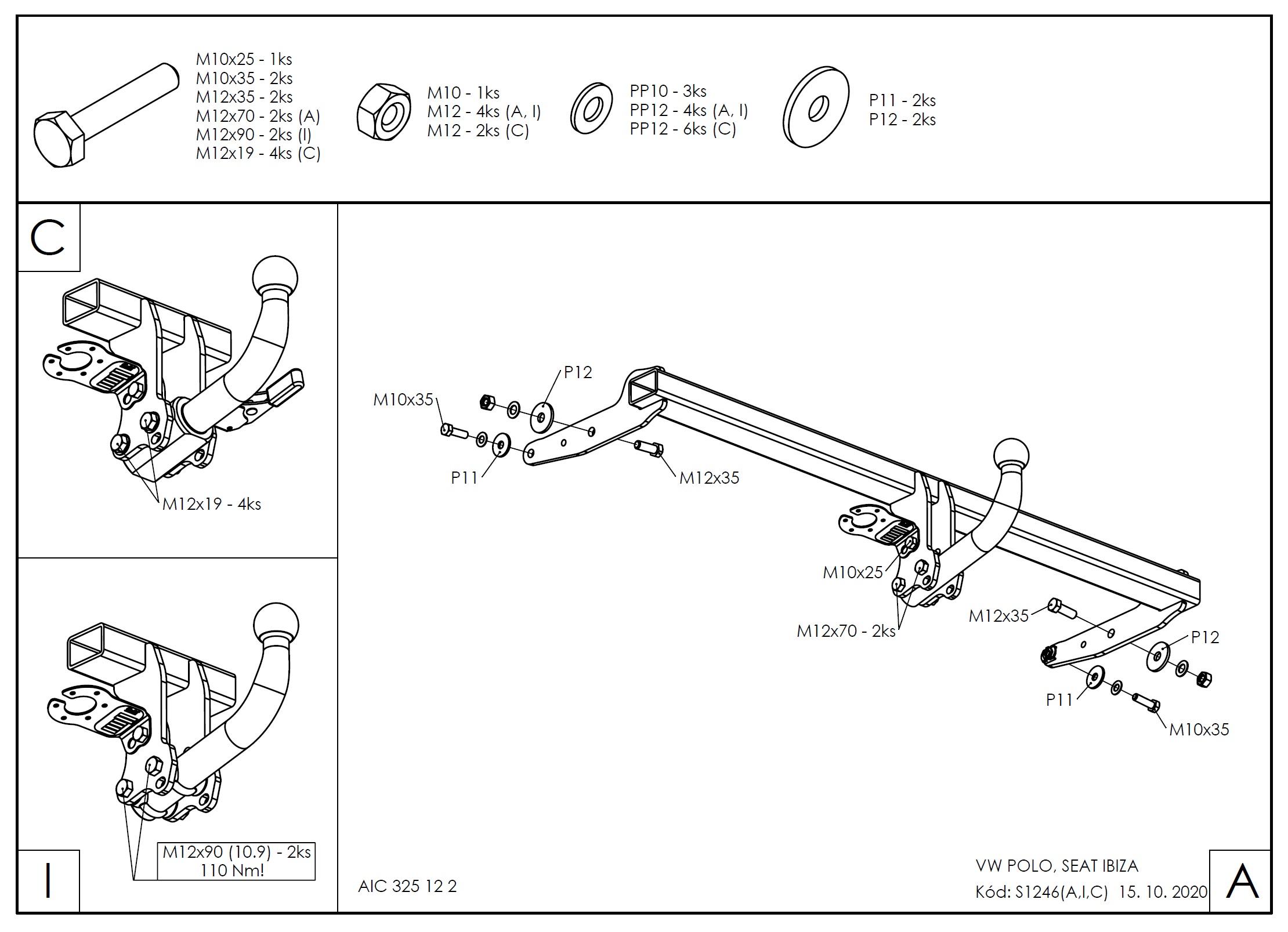 • Ťažnú guľu (podľa zvoleného typu – pevná skrutková alebo odnímateľná/bajonetová).