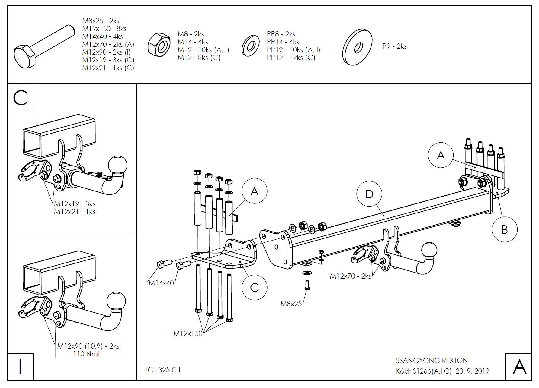 • Ťažnú guľu (podľa zvoleného typu – pevná skrutková alebo odnímateľná/bajonetová).