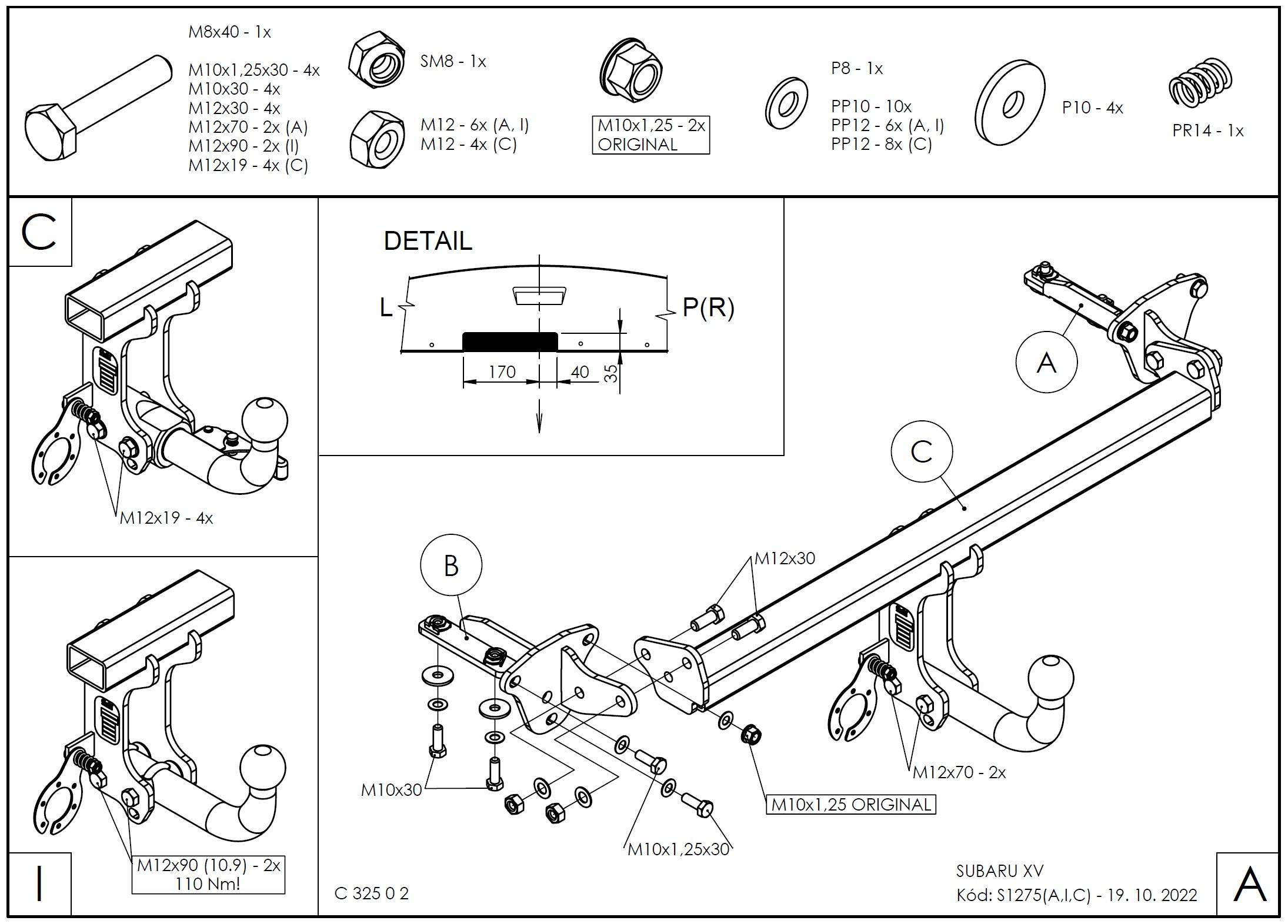 • Ťažnú guľu (podľa zvoleného typu – pevná skrutková alebo odnímateľná/bajonetová).