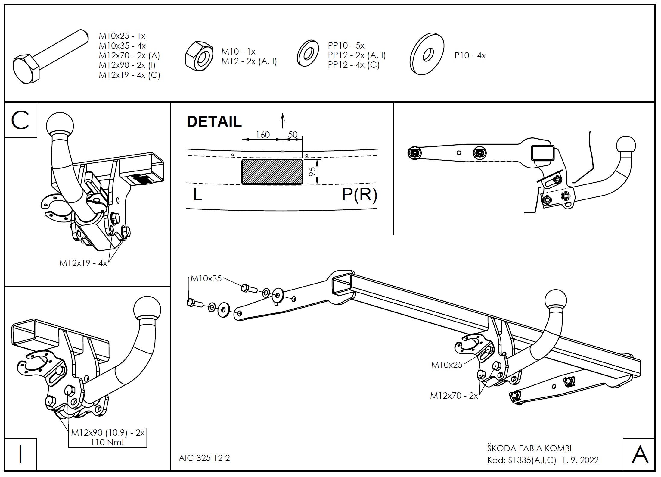 • Ťažnú guľu (podľa zvoleného typu – pevná skrutková alebo odnímateľná/bajonetová).