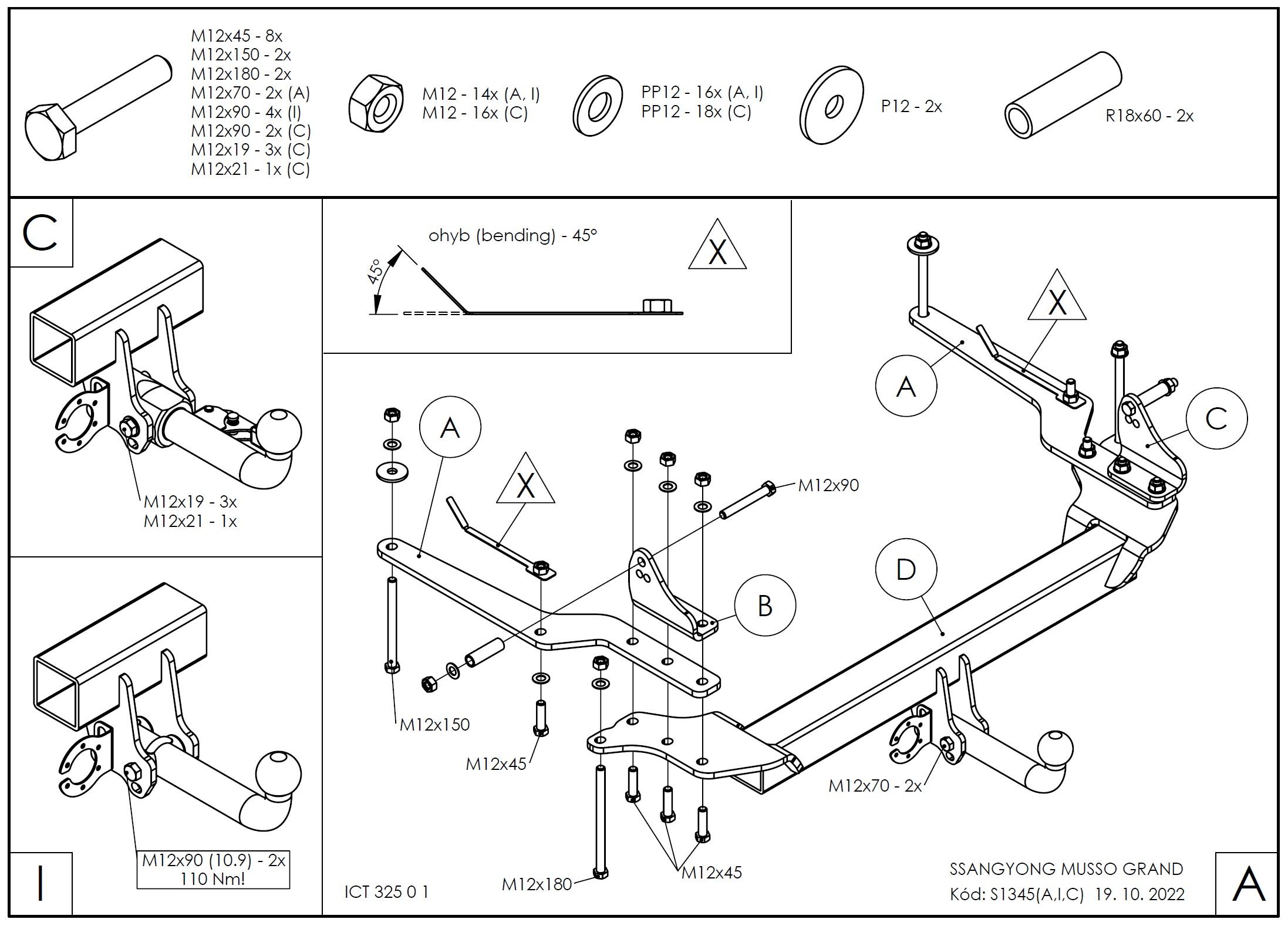 • Ťažnú guľu (podľa zvoleného typu – pevná skrutková alebo odnímateľná/bajonetová).