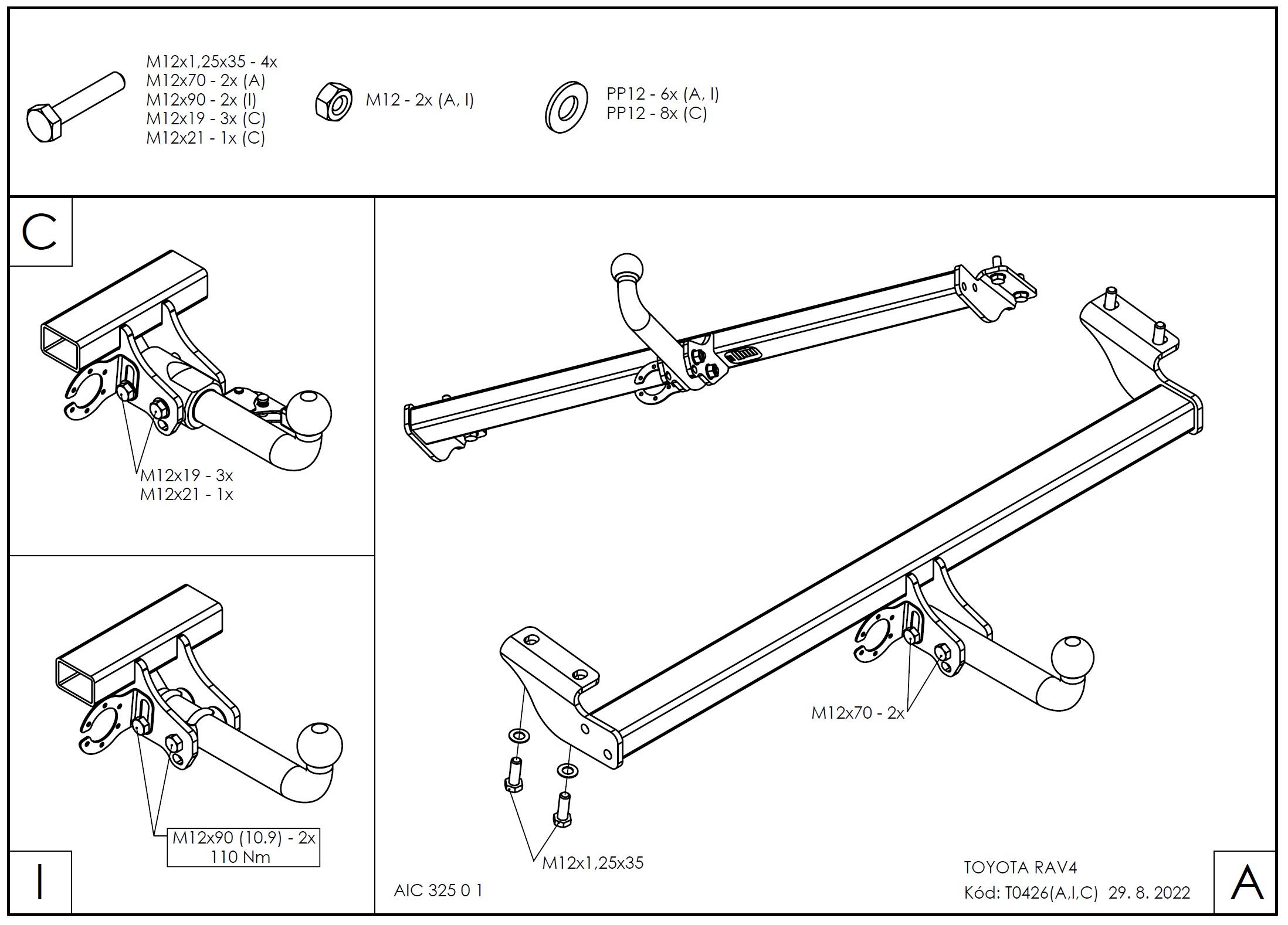 • Ťažnú guľu (podľa zvoleného typu – pevná skrutková alebo odnímateľná/bajonetová).