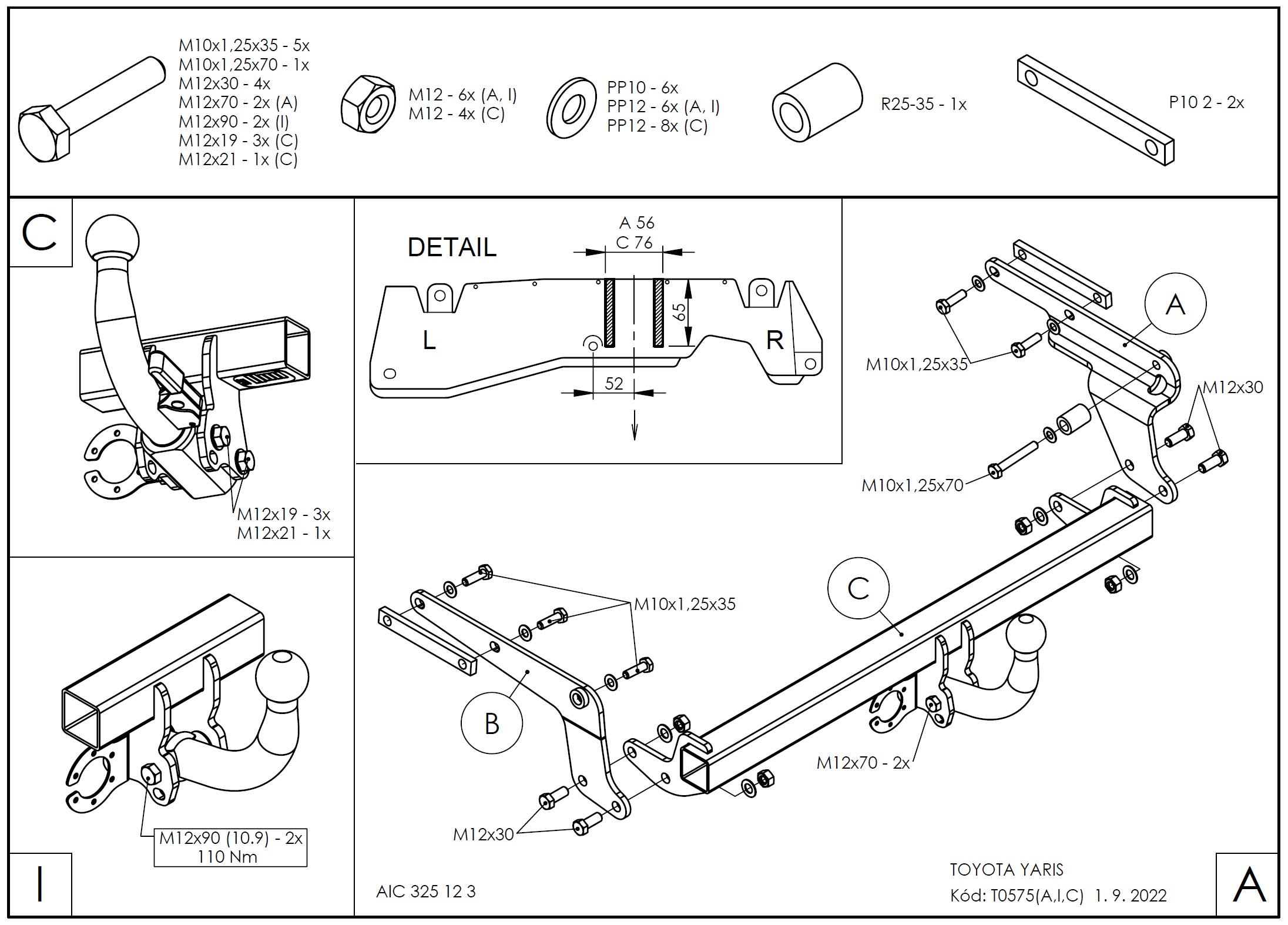 • Ťažnú guľu (podľa zvoleného typu – pevná skrutková alebo odnímateľná/bajonetová).