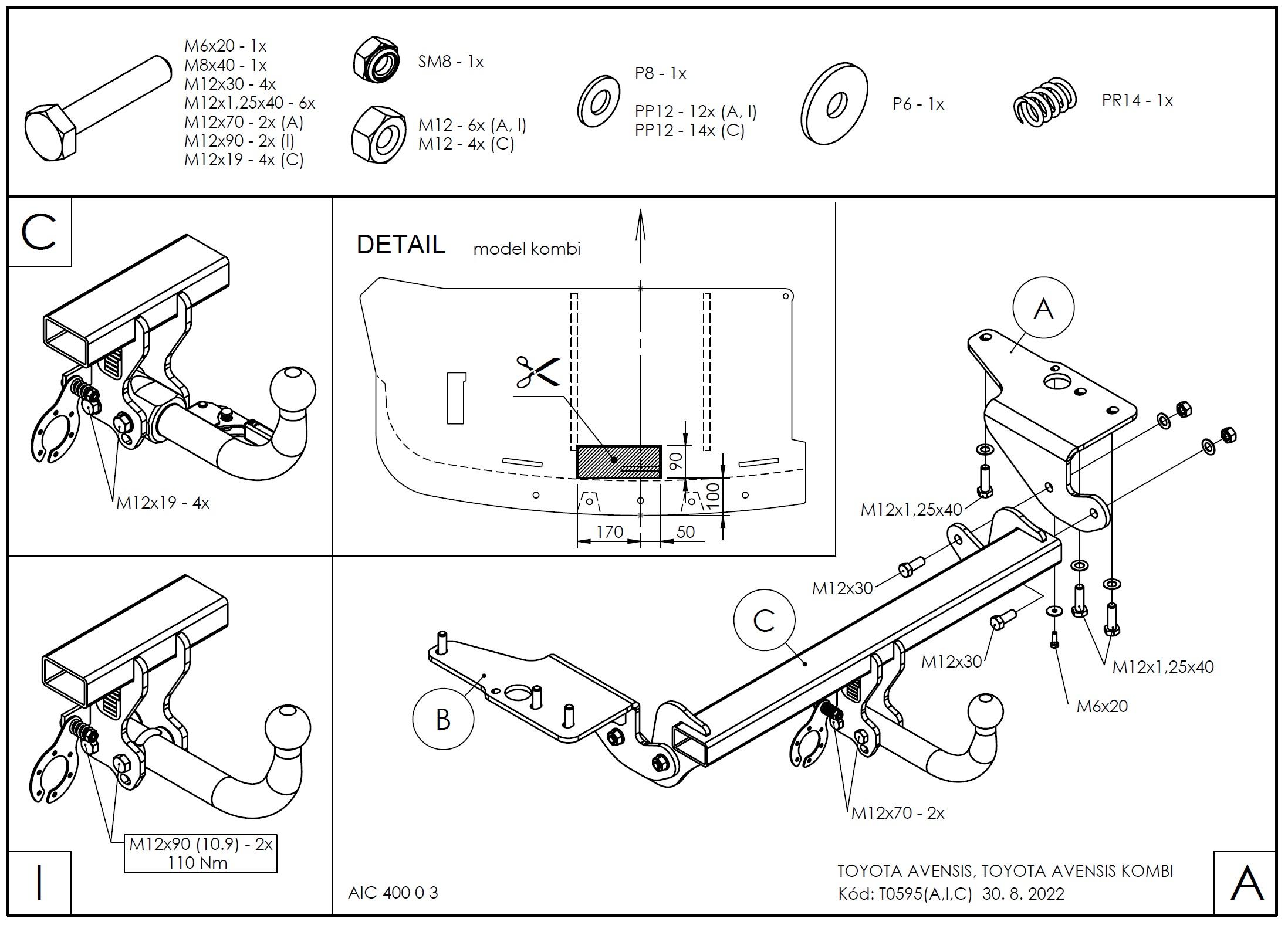 • Ťažnú guľu (podľa zvoleného typu – pevná skrutková alebo odnímateľná/bajonetová).