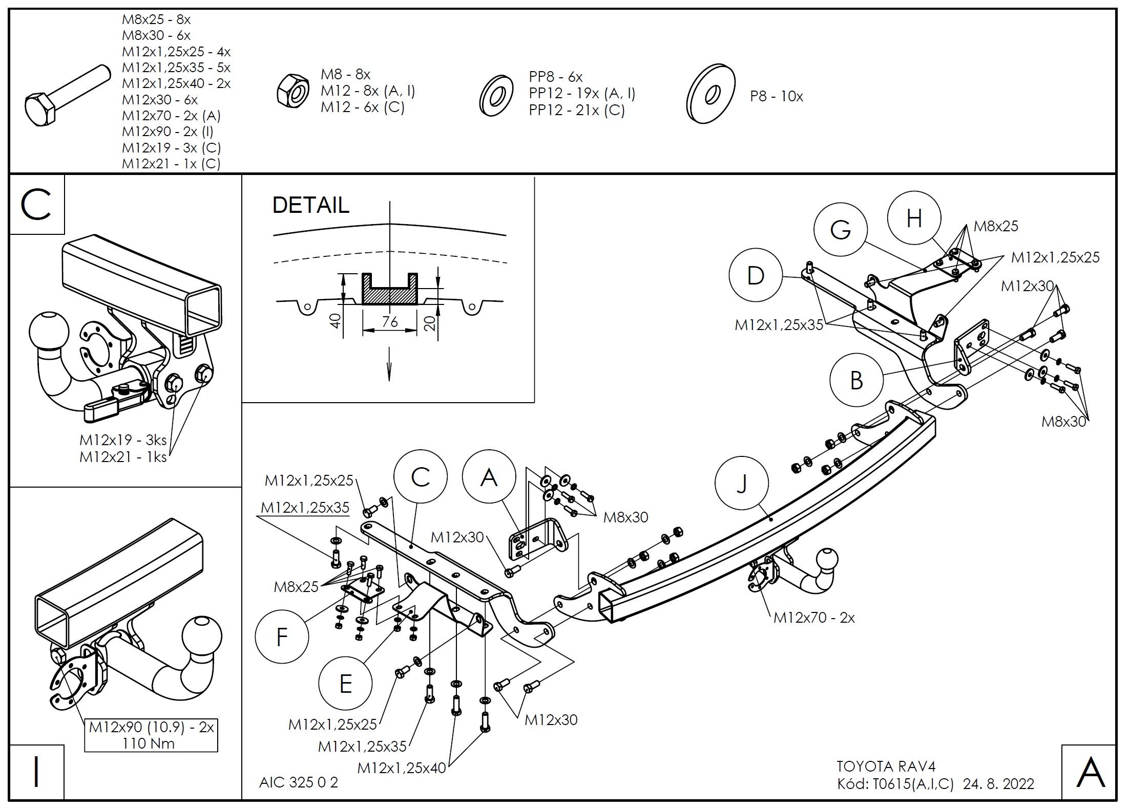 • Ťažnú guľu (podľa zvoleného typu – pevná skrutková alebo odnímateľná/bajonetová).