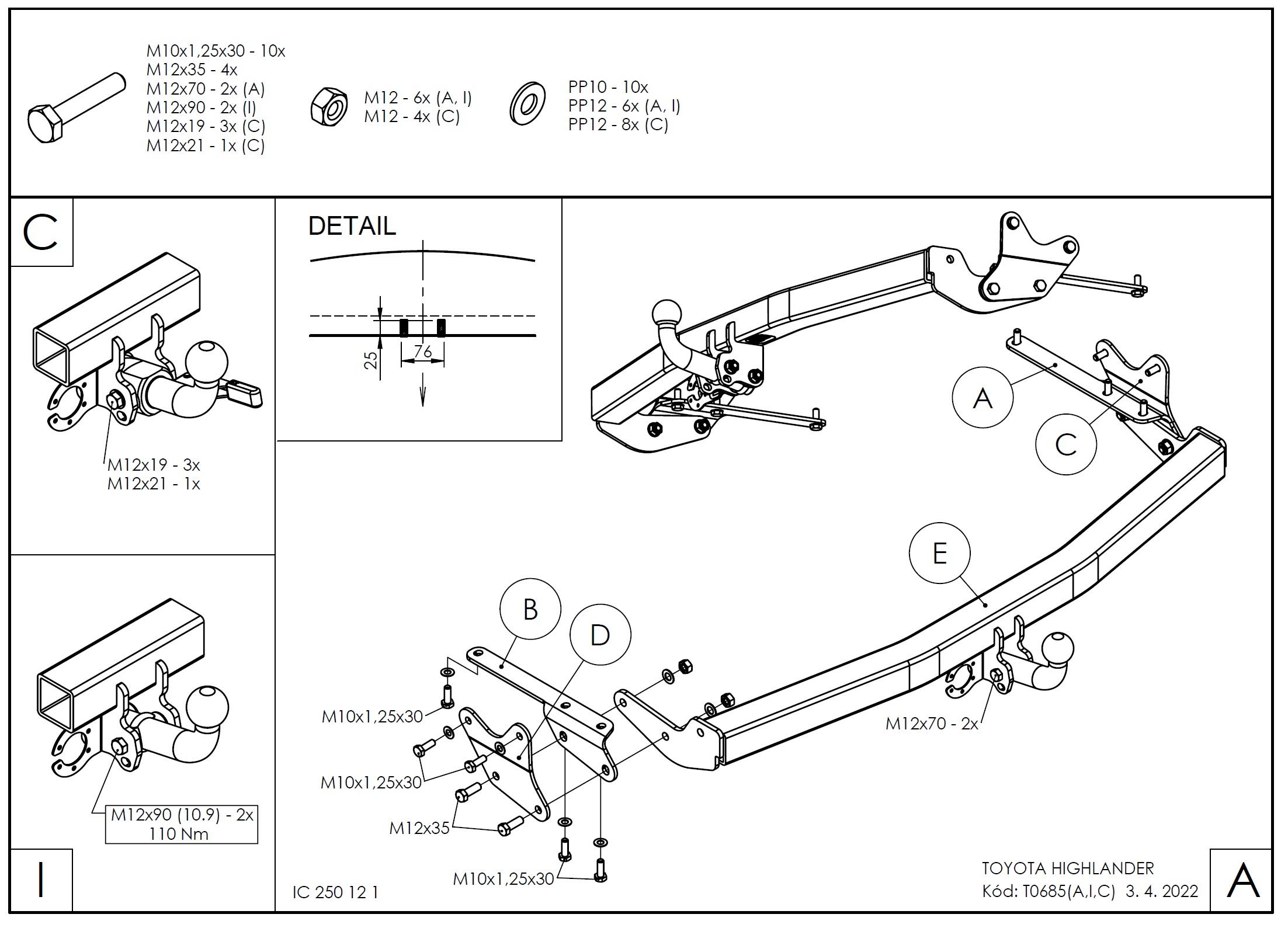 • Ťažnú guľu (podľa zvoleného typu – pevná skrutková alebo odnímateľná/bajonetová).