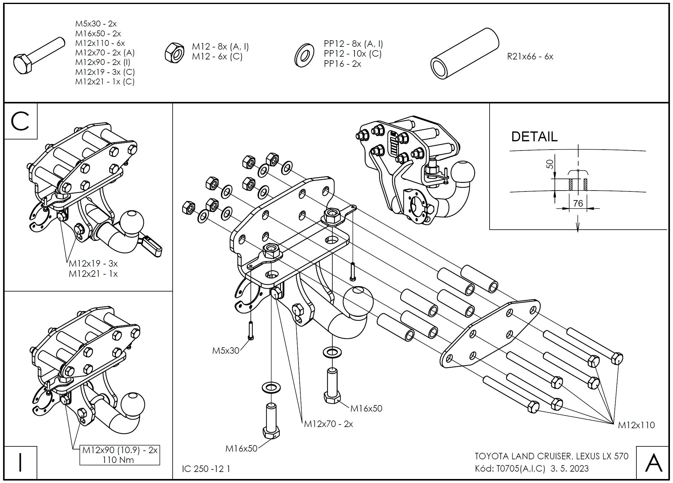 • Ťažnú guľu (podľa zvoleného typu – pevná skrutková alebo odnímateľná/bajonetová).