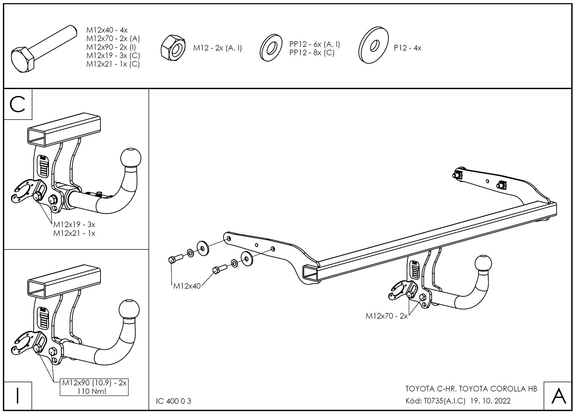 • Ťažnú guľu (podľa zvoleného typu – pevná skrutková alebo odnímateľná/bajonetová).