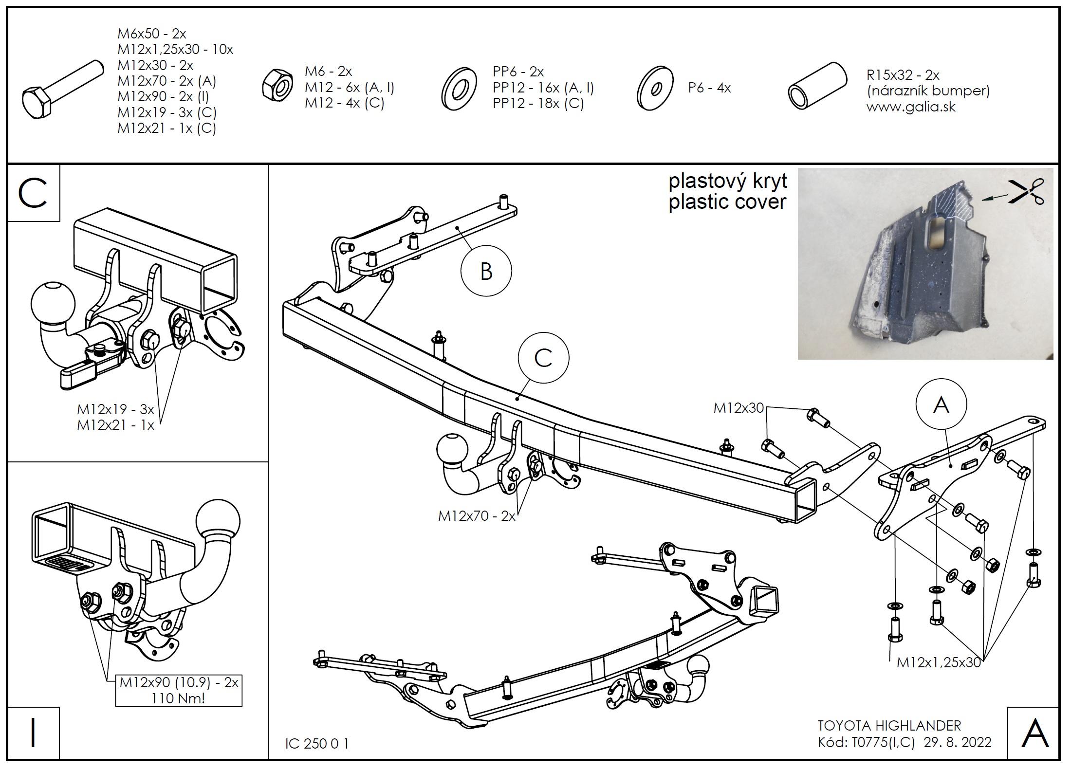 • Ťažnú guľu (podľa zvoleného typu – pevná skrutková alebo odnímateľná/bajonetová).