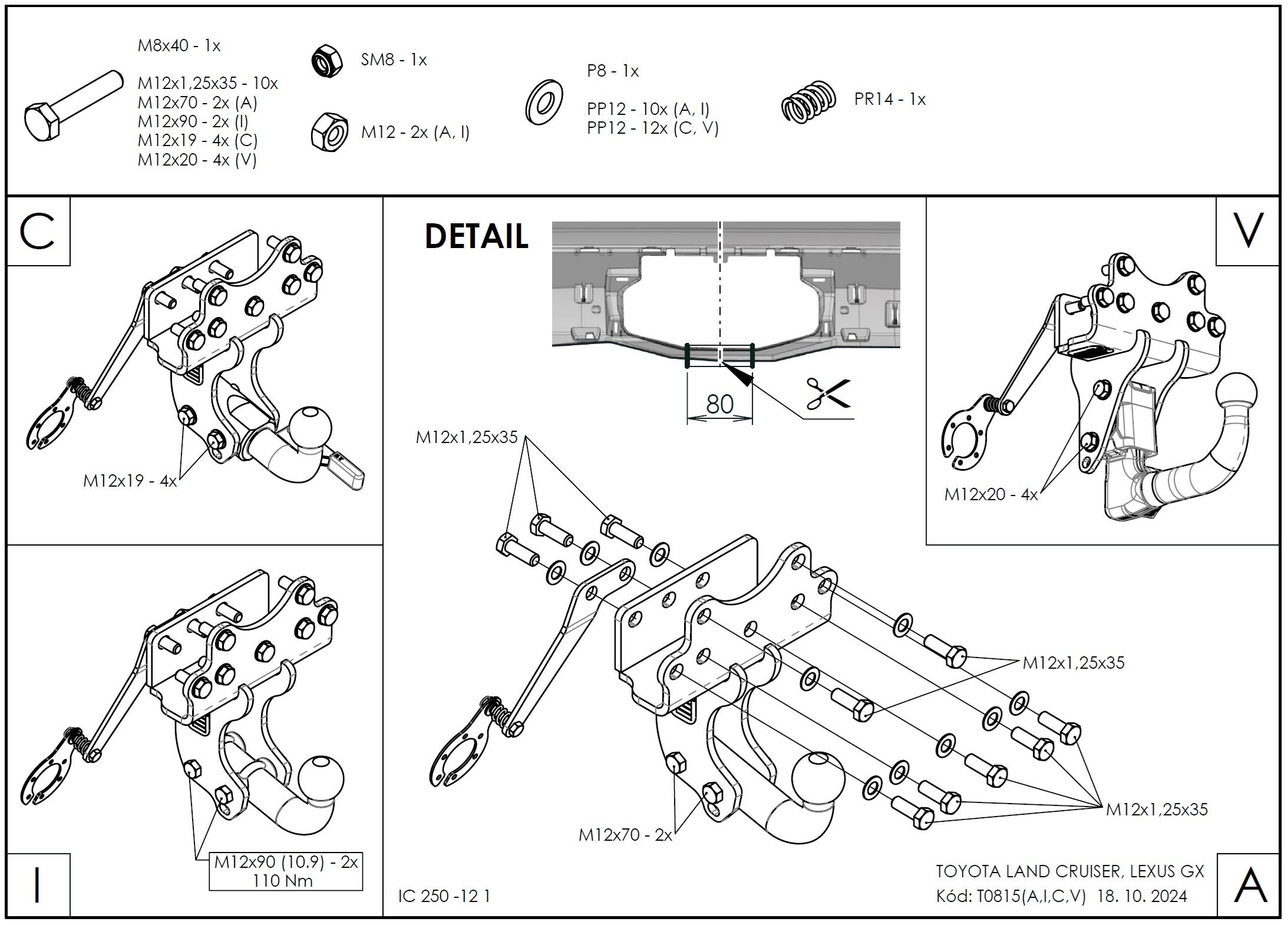 • Ťažnú guľu (podľa zvoleného typu – pevná skrutková alebo odnímateľná/bajonetová).