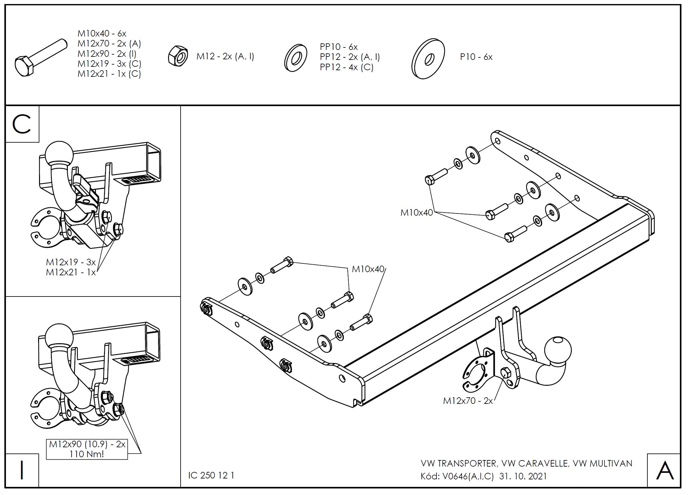 • Ťažnú guľu (podľa zvoleného typu – pevná skrutková alebo odnímateľná/bajonetová).