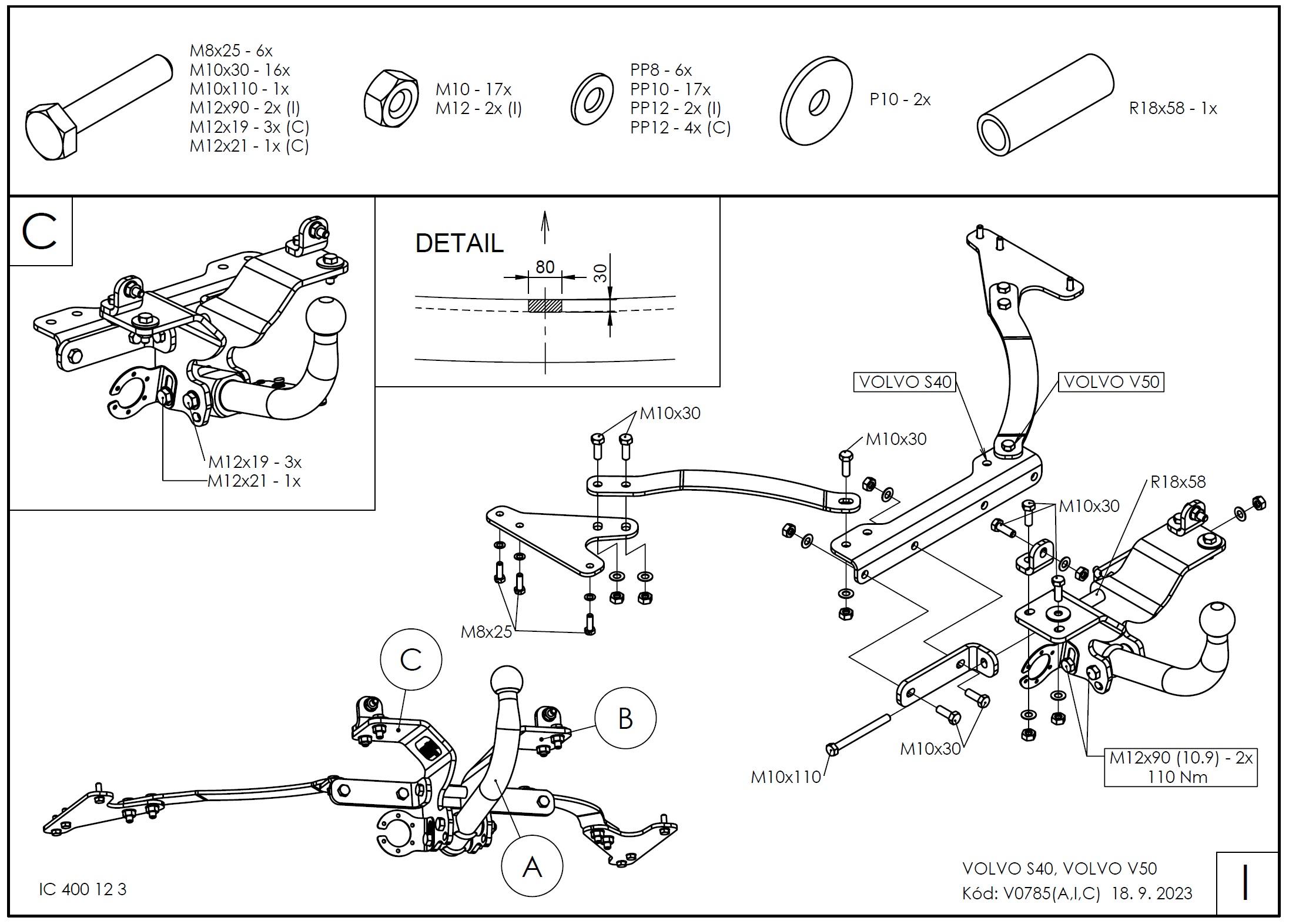 • Ťažnú guľu (podľa zvoleného typu – pevná skrutková alebo odnímateľná/bajonetová).