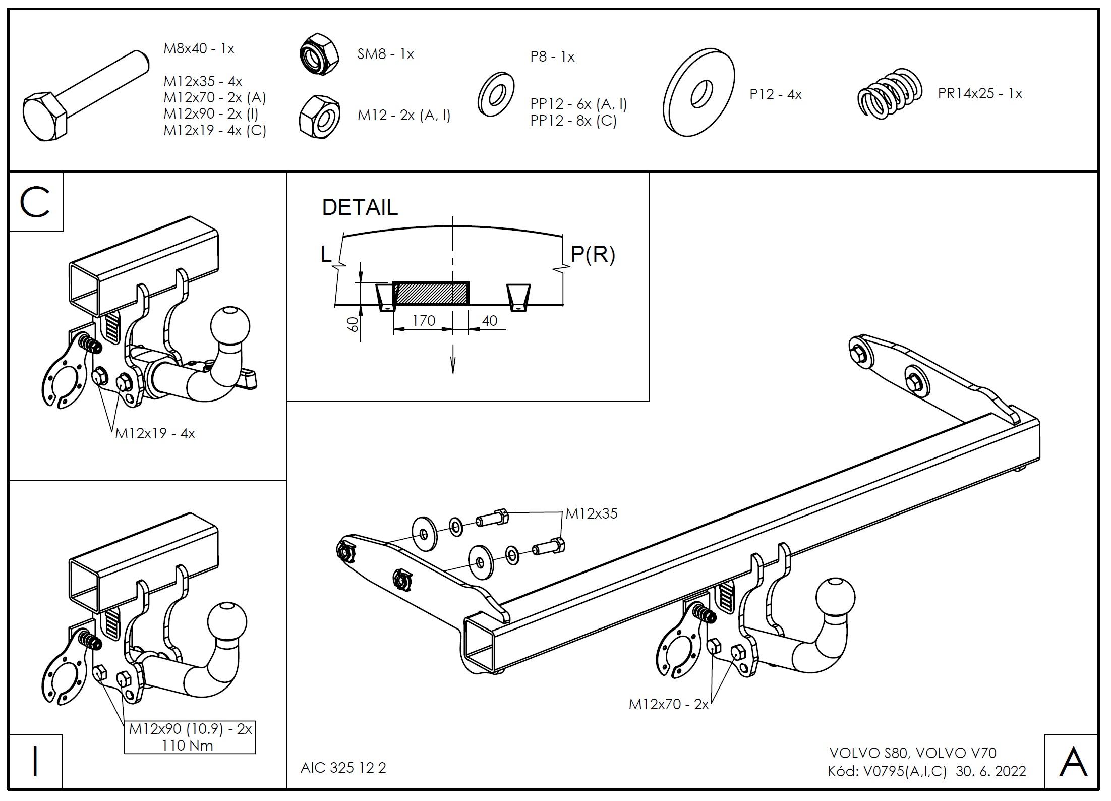 • Ťažnú guľu (podľa zvoleného typu – pevná skrutková alebo odnímateľná/bajonetová).