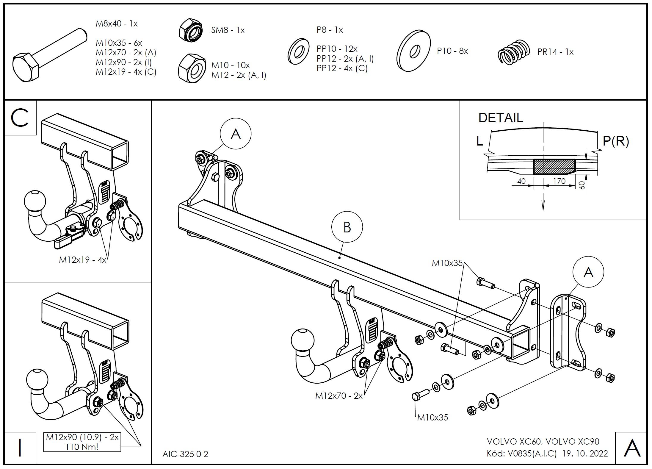 – Pri montáži je potrebné demontovať nárazník.- Použitie ťažného zariadenia si vyžaduje rezať do nárazníka.