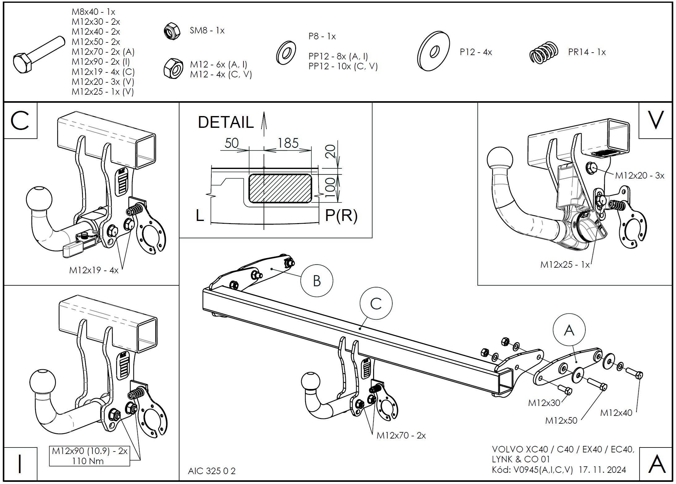 • Ťažnú guľu (podľa zvoleného typu – pevná skrutková alebo odnímateľná/bajonetová).